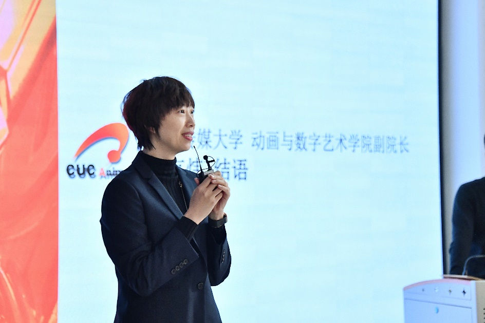 活动最后,陈京炜副院长对活动作了总结。她首先向为这次比赛付出的各位老师、同学和业界的各位人士表示感谢,同时也表示,比赛中呈现了很多令人眼前一亮的作品,科技的进步带给创作者更多空间和可能性。希望同学们在专业领域和行业中不断前行,借助游戏这一媒介,创作更多能够为现实世界带来积极意义和艺术享受的作品。