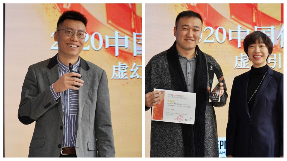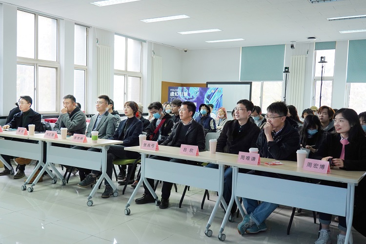 荣获“金师奖”的韩红雷老师和蒋轲老师分别发言。韩红雷老师首先感谢学校对本科教育的重视和投入,他表示本次大赛能让本科生参与到创作、科研中,并且不同专业的同学能够相互配合、相互学习,是一种很好的学习、实践模式。蒋轲老师首先对主办方提供的本次交流分享机会表示感谢,希望今后能加强中央美术学院和中国传媒大学间的交流,并祝愿同学们未来创作越来越好。