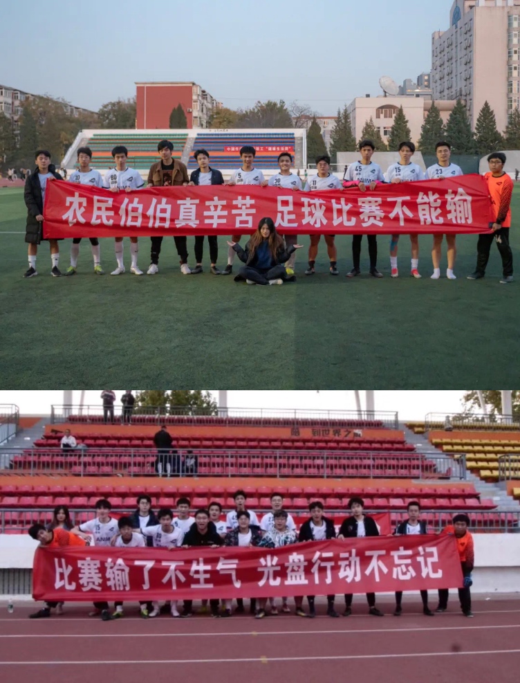为了更好地落实“光盘行动”精神,广泛宣传勤俭节约意识,学院在校足球比赛活动中印制“农民伯伯真辛苦 足球比赛不能输”“输了比赛不生气 光盘行动别忘记”等标语横幅,将光盘行动精神与体育精神紧密融合。