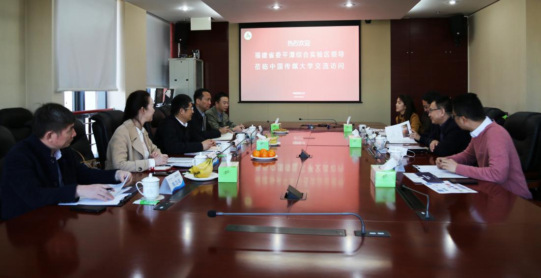 (通讯员 张新越 摄影 宫潇 苏圣婷)11月12日,福建省委平潭综合实验区工作委员会委员、副书记,中国(福建)自由贸易试验区平潭片区管理委员会副主任黄建波一行四人来到中国传媒大学,就合作培养两岸影视传媒人才,提升平潭区域影响力等事宜商谈交流,受到李新军副校长的热情接待。