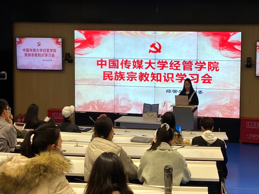 (通讯员 白佳乐)11月4日,经济与管理学院团委在33号楼一楼报告厅举办民族宗教知识学习分享会,各团支部委员在主会场参会,学院全体团员通过线上直播参加。