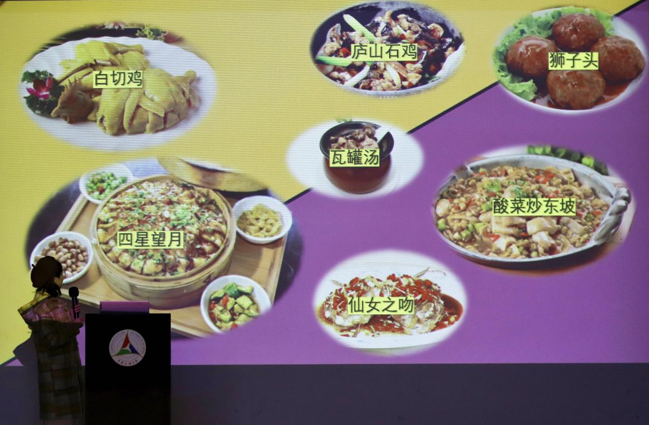赣文化交流协会代表带来展品《赣鄱“食”光》,与现场同学开展了“赣菜”知识问答小活动后,介绍了江西菜历史、流派及其与红军的故事。