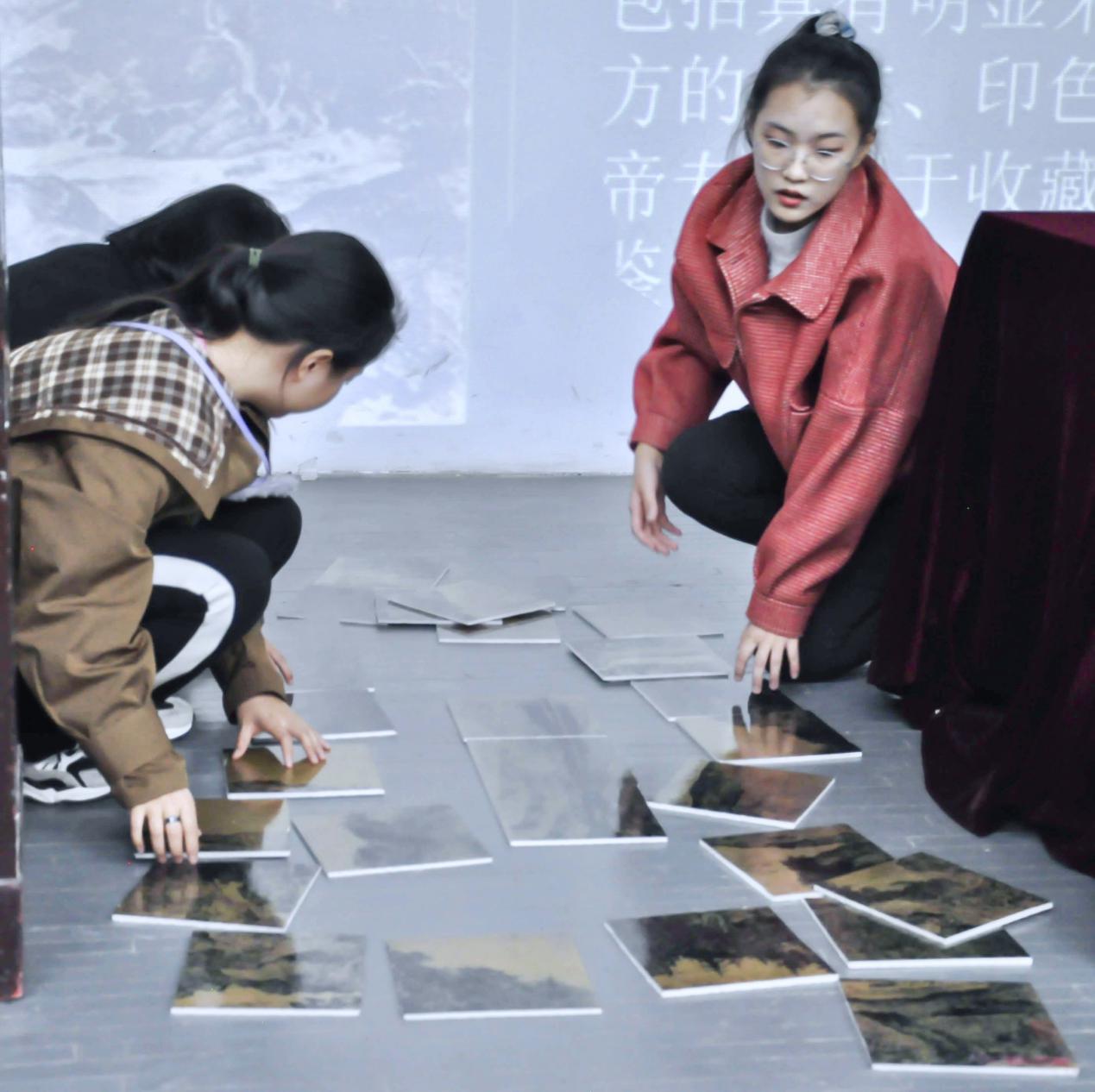 中国传媒大学书画协会介绍了北宋范宽的作品《溪山行旅图》,并邀请观众到台上共同完成拼图。拼图游戏将古风与传统文化之“光”传递给了“追光者”们。