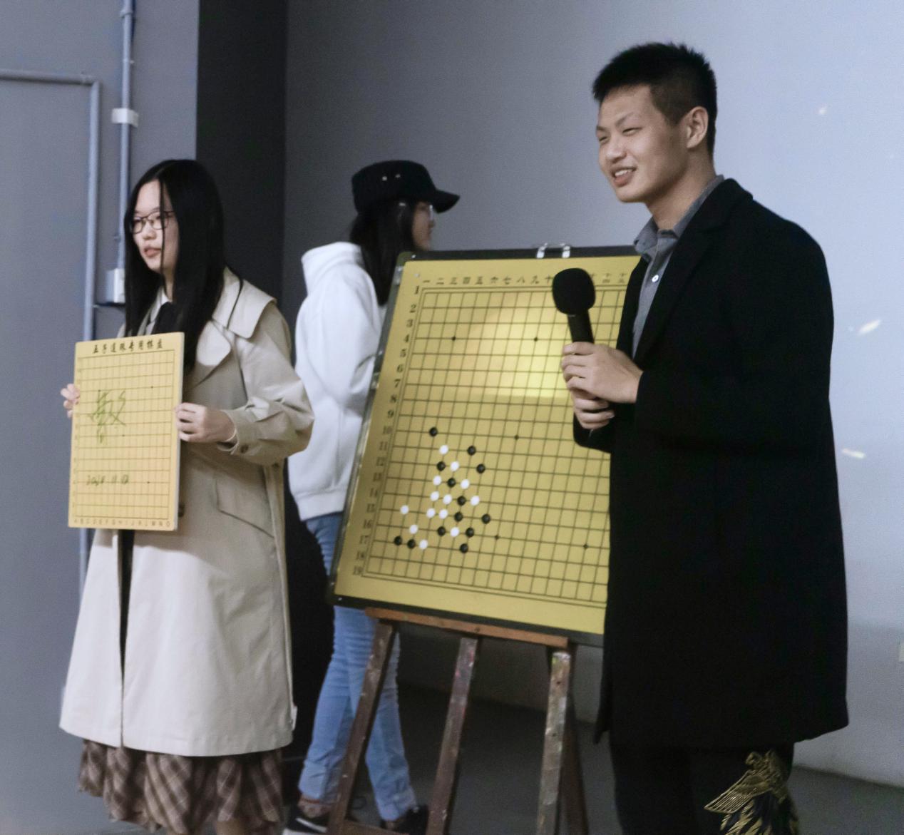 传棋社的成员带来藏品《日月合壁,五星连珠》,现场连线第12届连珠世锦赛冠军曹冬老师进行经验分享。随后现场邀请观众与其进行在线五子棋对弈,传递了棋文化之“光”。