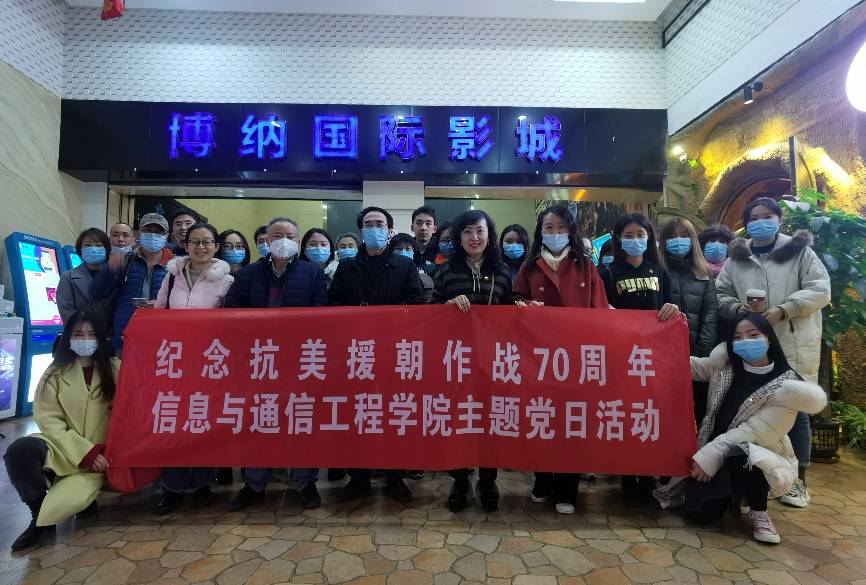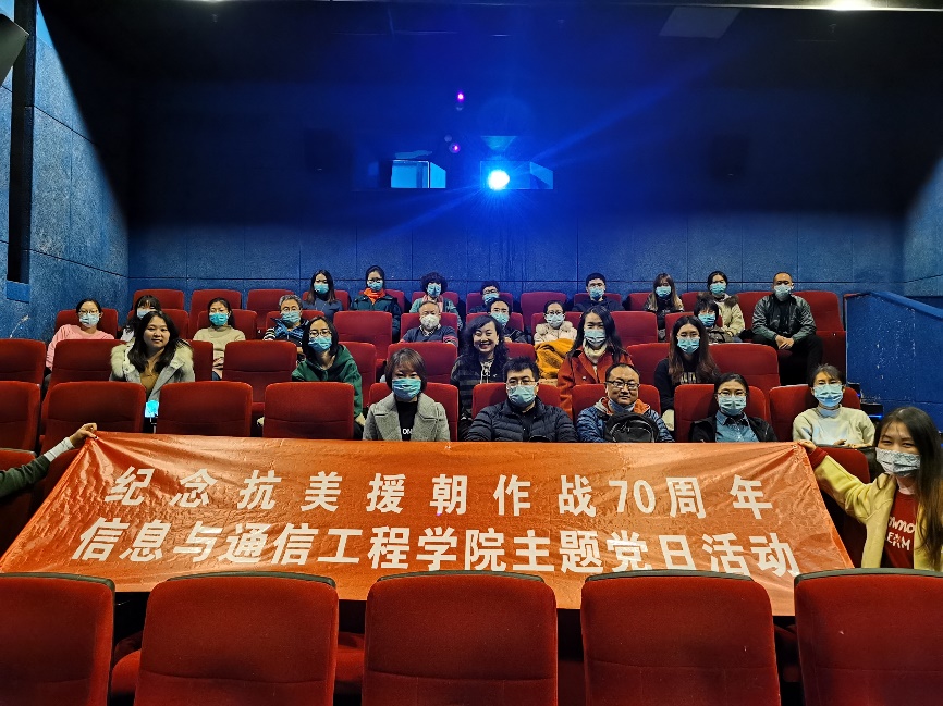 (通讯员 王雨晨 摄影 游玉栋)11月17日,信息与通信工程学院党委组织开展“纪念抗美援朝作战70周年”主题党日活动暨《金刚川》电影党课。学院党委机关党支部、信息网络技术系教工党支部、通信工程系教工党支部及部分学生党员参与了本次活动。