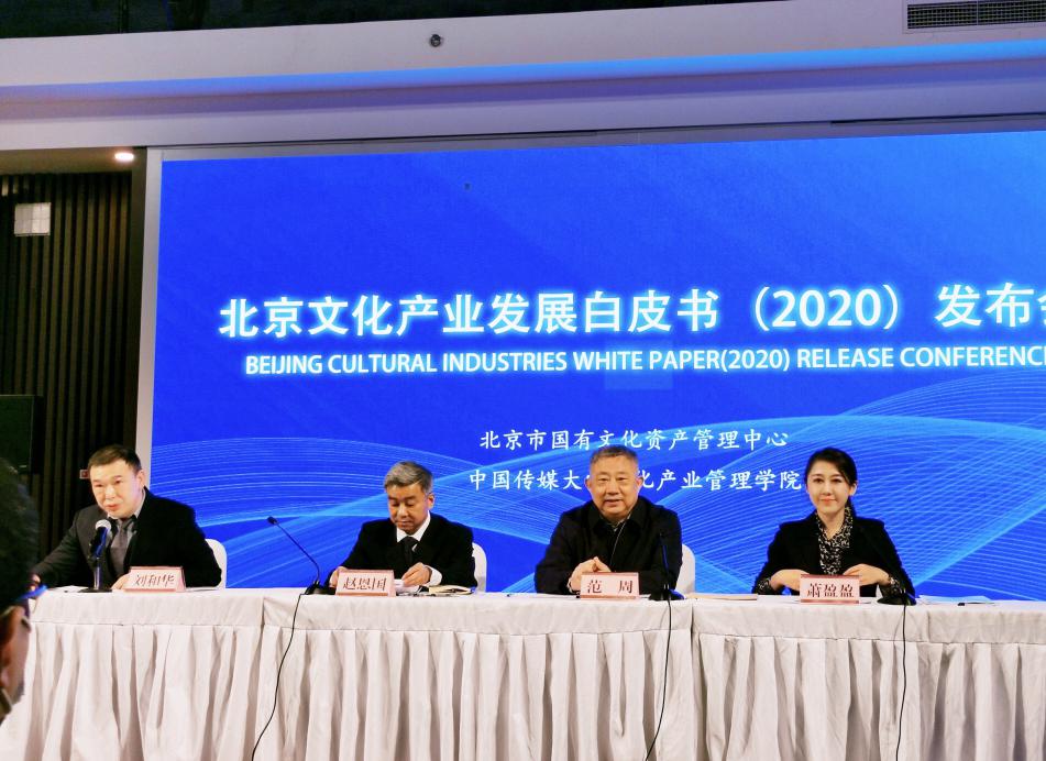 (通讯员 萧盈盈)11月24日,中国传媒大学文化产业管理学院与北京市国有文化资产管理中心联合发布了《北京文化产业发展白皮书(2020)》。发布会上,北京市国有文化资产管理中心副主任赵恩国介绍了《白皮书》的编撰背景和主要内容,中国传媒大学文化发展研究院院长范周教授介绍了《白皮书》的编制思路,并进行了专家解读。范周教授、萧盈盈副教授就北京文化产业发展相关热点问题,回答了《北京日报》《经济日报》等多家主流媒体的记者提问。会后,北京电视台记者就“十四五”期间北京文化产业发展的趋势和思路对范周教授进行了专访,并在晚间北京卫视《北京新闻》中播出。