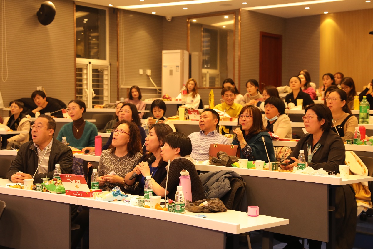 在联欢会的游戏环节,老师与同学们进行了有趣的互动,现场充满了欢声笑语,大家都玩得不亦乐乎。