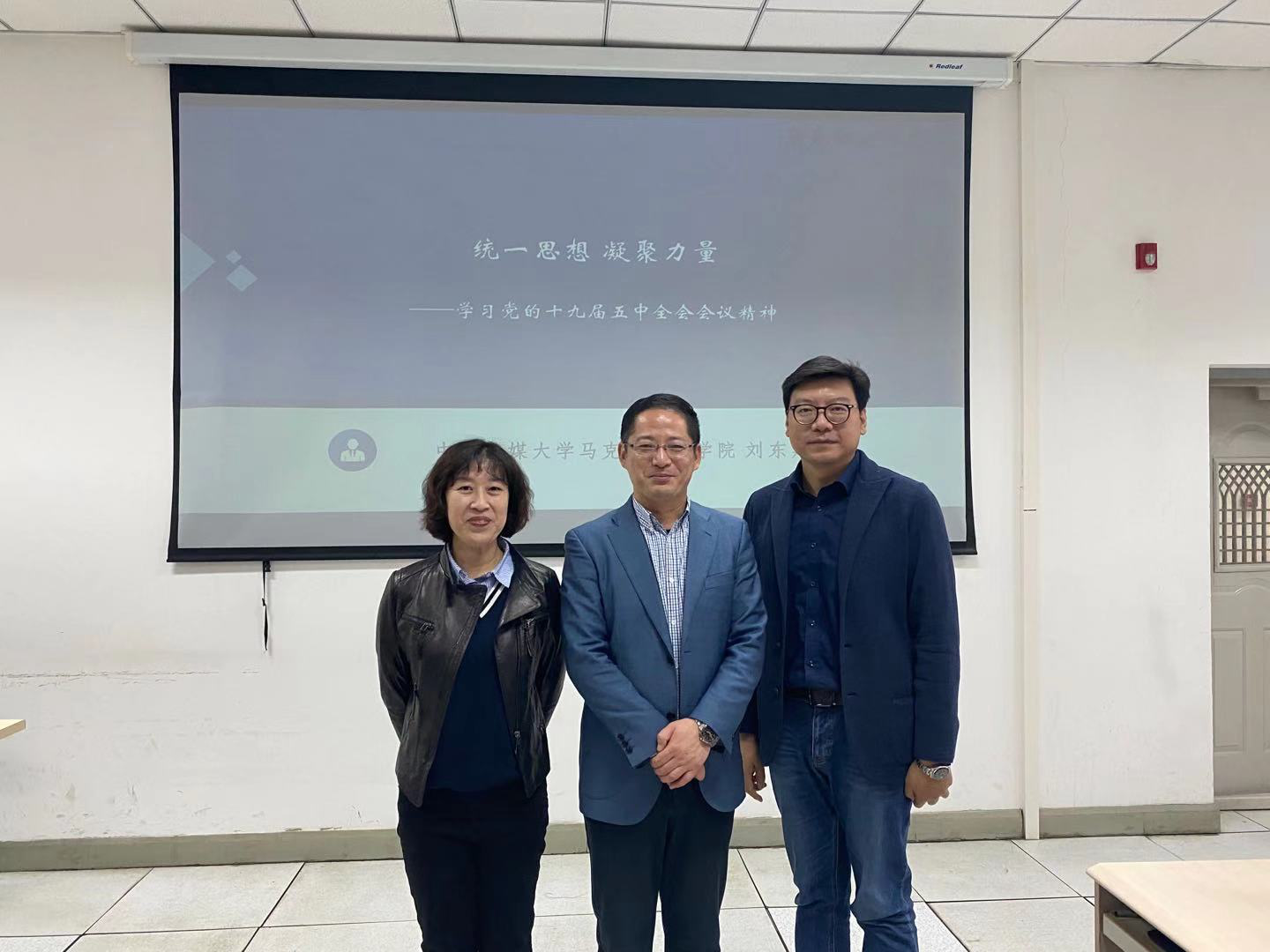 十九届五中全会是在全面建成小康社会胜利在望、全面建设社会主义现代化国家新征程即将开启的重要历史时刻召开的一次十分重要的会议,是中国共产党为全面开启建设社会主义现代化国家新征程而进行的一次重要战略擘画,在实现中华民族伟大复兴历史进程中具有里程碑意义。刘东建教授紧紧围绕学习贯彻党的十九届五中全会精神主题,从会议背景——精心准备、科学谋划;会议内容——开启新征程、构建新格局;核心要点——把握关键三个方面,对全会精神进行了清晰梳理和全面解读。