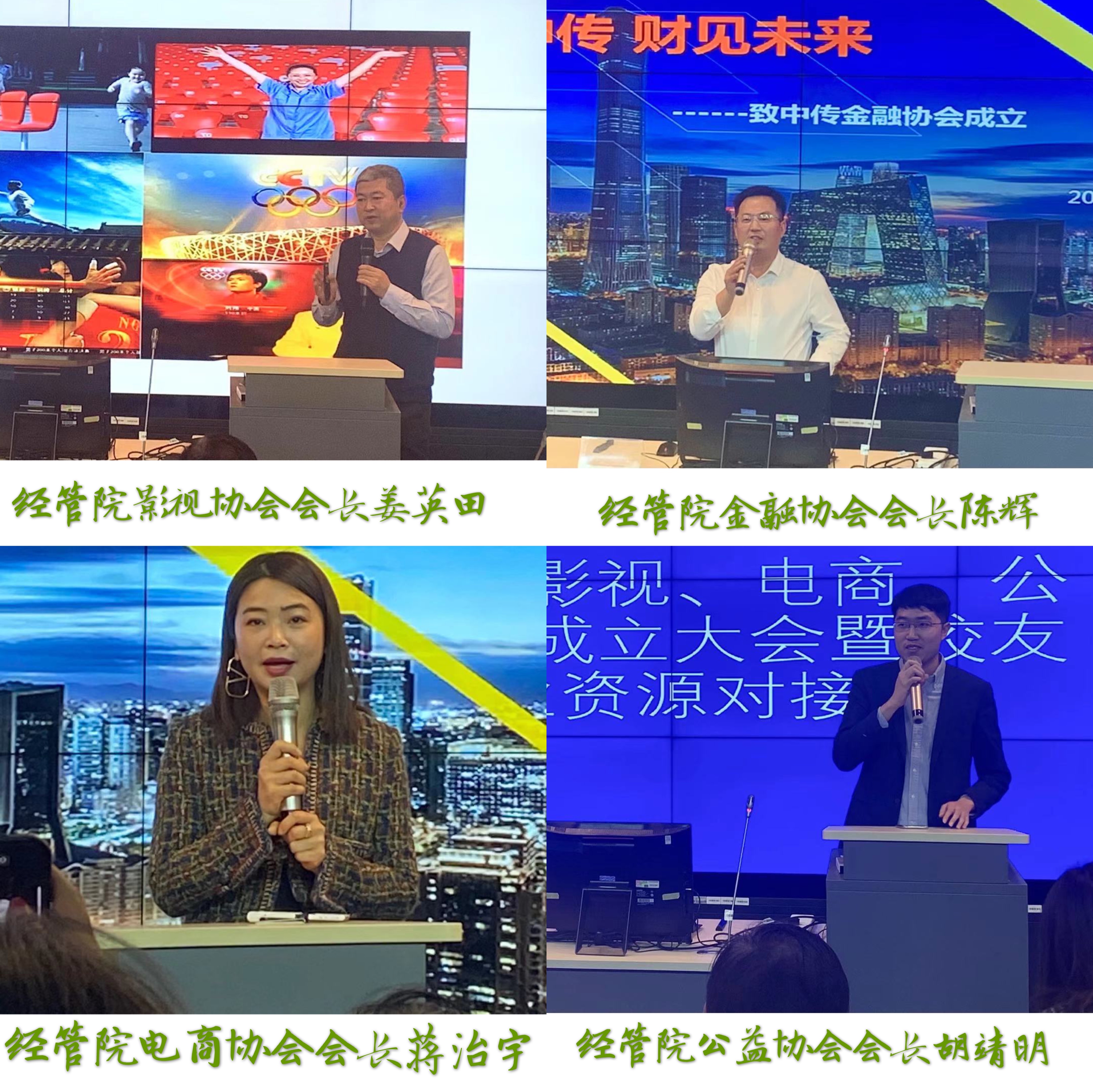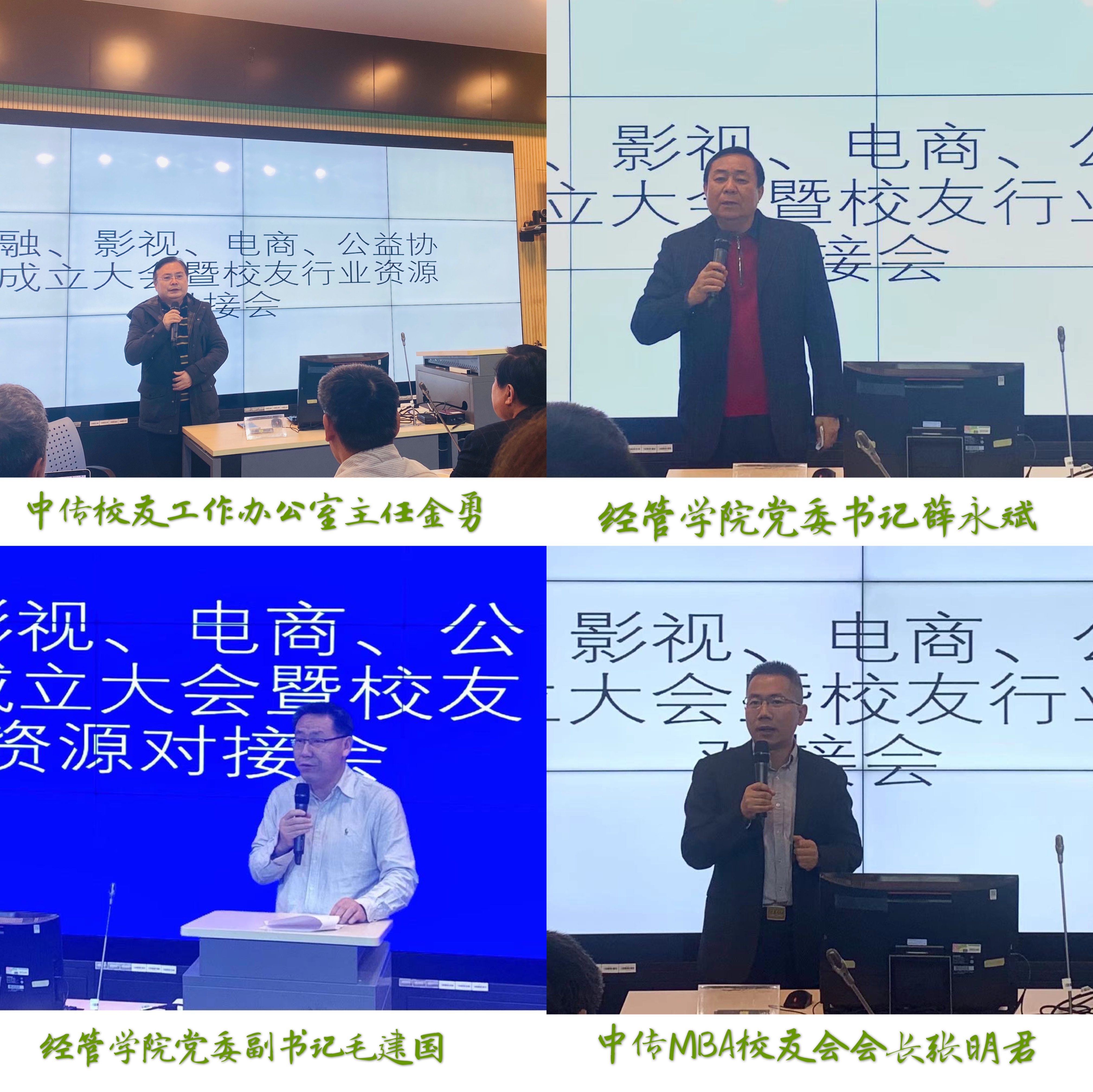 (通讯员 李坤 冀佳璐)11月29日下午,经济与管理学院金融、影视、电商和公益四个校友行业协会成立大会在33号楼报告厅举办。中国传媒大学校友工作办公室主任金勇,经济与管理学院党委书记薛永斌、党委副书记毛建国等领导老师出席成立大会。