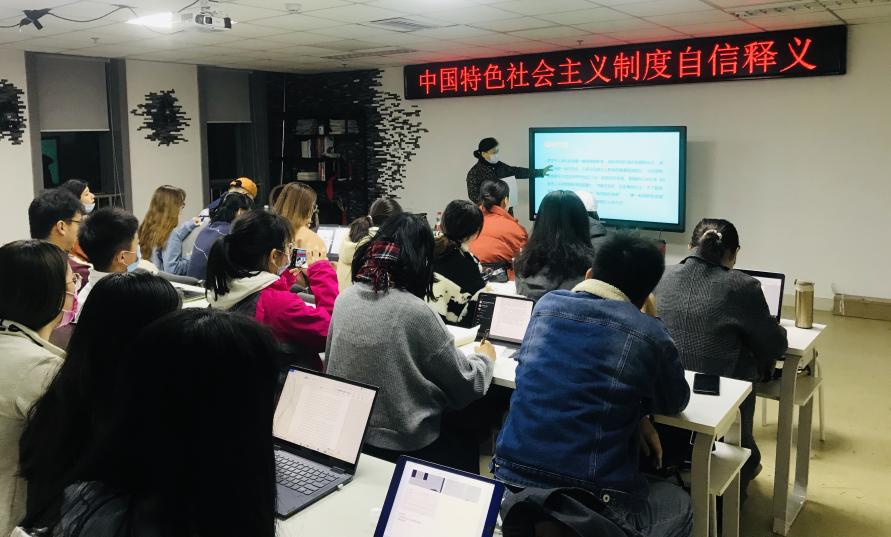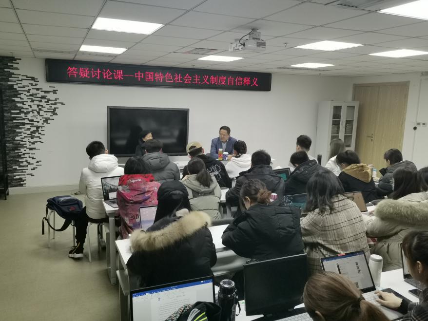 (通讯员 葛沛源 孙仪凤 贾佳豪 摄影 贾佳豪 孟蝶)我校青年马克思主义学院第四期开营以来,课堂设计围绕“四个自信”展开丰富多彩的主题活动,为学员深入贯彻党的十九届四中全会,培养“四有”意识提供了宝贵的实践平台。 11月15日,马克思主义学院李静霞教授就“中国特色社会主义制度自信释义”内容进行课堂讲授。同学们课程中踊跃发言、课堂下积极交流,通过自主阅读推荐书目、小组讨论等形式向大家分享课程学习成果。11月29日,马克思主义学院院长刘东建教授和李静霞教授针对同学们的思考与困惑进行了详细解答。