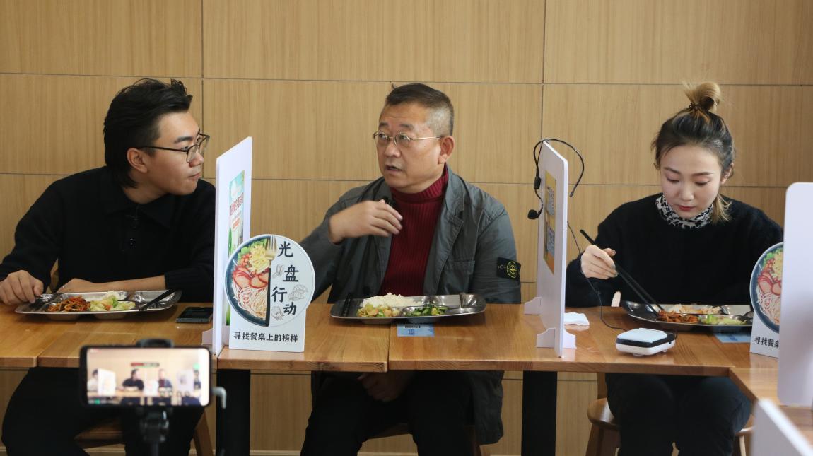 本次直播的主题为“寻找餐桌上的榜样”,邀请到了我校戏剧影视学院副教授、著名配音演员李立宏老师参与光盘行动,与来自各学院的15名同学一起践行光盘。进餐过程中,李老师和大家分享了自己绿色环保节约的理念,还和大家聊起了学校食堂的变迁,表示现在食堂里食品的种类样式越来越多,味道也越来越好。但是纵然生活越变越好,我们也仍需传承发扬勤俭节约的传统美德。