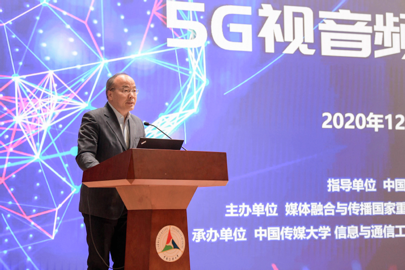 刘守训副校长在致辞中对各位领导专家的到来表示热烈欢迎和诚挚感谢。他表示,媒体融合发展是一次以技术创新为引领的媒体变革,利用人工智能、大数据、5G/6G 网络、超高清视频等新兴技术和思维进行深化创新,建立健全有中国特色的全媒体传播体系,已经成为我国媒体发展的必由之路以及媒体融合向纵深方向前进的重心。5G 视音频分论坛的举办,发挥了中国传媒大学在5G视音频领域的积极作用。未来要以国家重点实验室建设为抓手,全面推动我校智能传媒教育发展,为行业培养更多创新型人才。