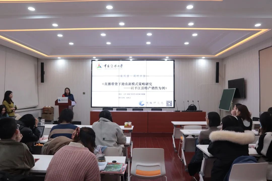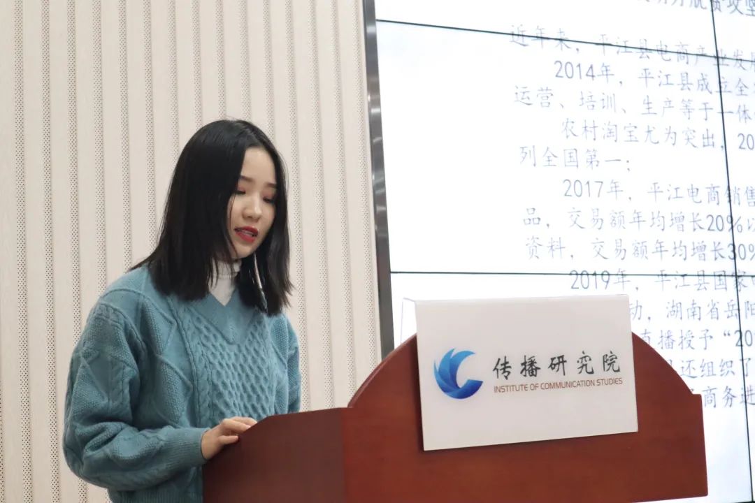 (通讯员 文佳)12月9日,由传播研究院主办的“调研中国”成果报告会成功举办。此次调研项目题为《直播带货下助农新模式策略研究——以平江县特产销售为例》,由传播研究院青年教师康秋洁带队,团队成员包括来自国际新闻学专业的文佳、庞敏、周怡然,以及来自广告学院的张梓楠和戏剧影视艺术学院的欧媛媛。