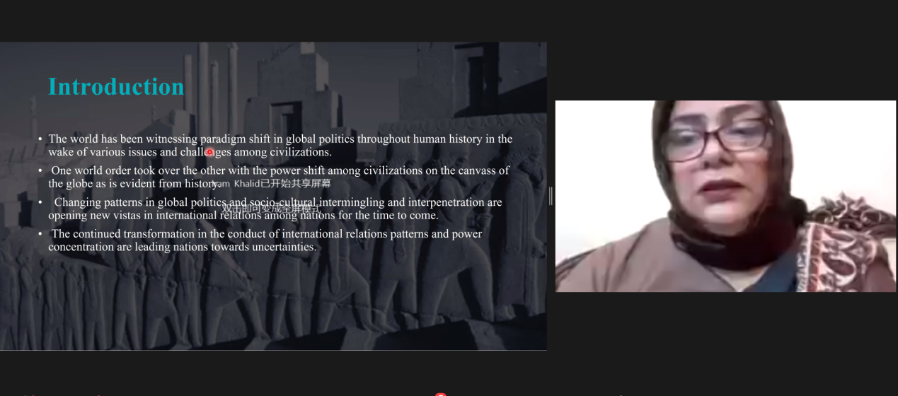 旁遮普大学政治科学系主任Iram Khalid从文明对话的角度出发,详细阐释了展开文明交流对话的重要性,她指出,国际政治格局处于动态变化的阶段,曾经的文化取代形式的发展模式已不复存在,不同社会文化的相互渗透影响,将形成新的国际关系局势。西方理念不再是唯一的标准,多元文明在国际舞台上大放异彩。同时,国际对于新模式的接受需要通过彼此交流逐步达成,因此她建议全球开展文明对话与合作联盟,增强彼此的沟通互助,加深对世界多元文明的理解和接纳,以更好地应对全球挑战,并迎接全球新局势。