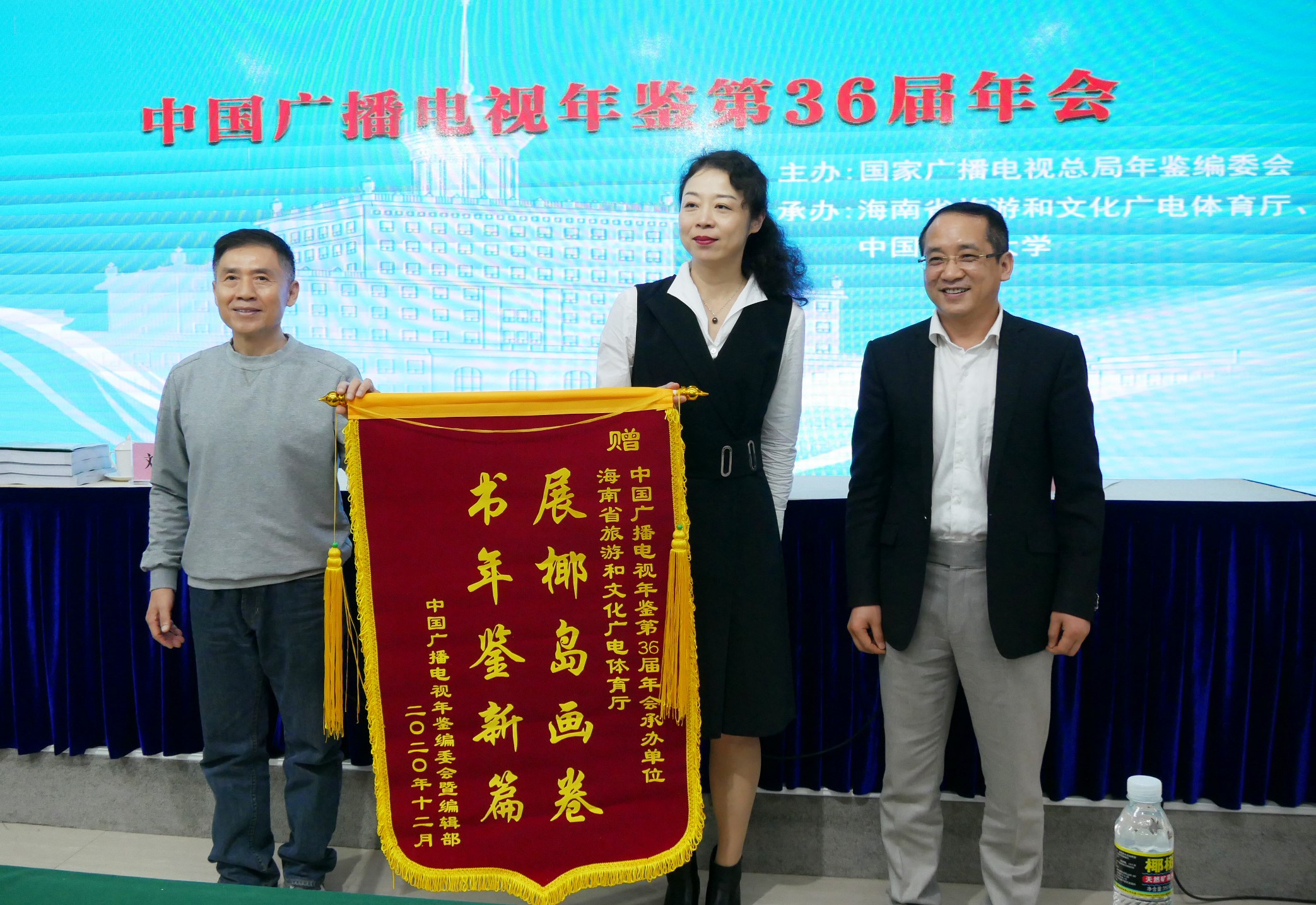 中国广播电视年鉴编委会和年鉴编辑部向会议承办方赠送锦旗