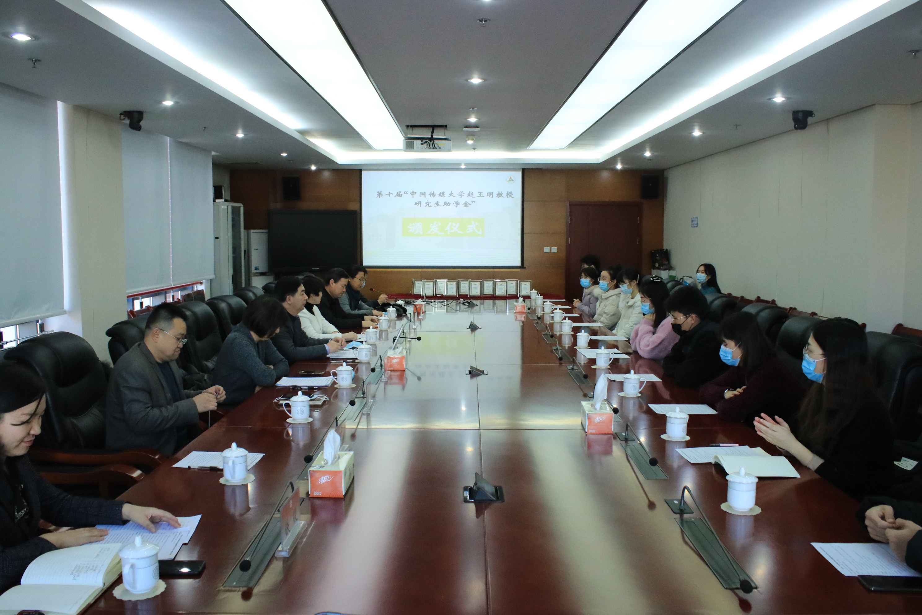 (通讯员 伍玮 摄影 吴澳)12月22日,第十届“中国传媒大学赵玉明教授研究生助学金”颁发仪式在我校明德楼举行。该项目发起人及捐赠人赵玉明教授的长女赵虹女士、北京体育大学新闻与传播学院副院长薛文婷,我校党委副书记姜绪范、新闻学院党委书记陈作平、项目评审代表庞亮、受资助研究生导师代表张毓强、评审工作代表艺术研究院党委副书记铁俊出席仪式,获得2020年“赵玉明教授研究生助学金”的10名同学参加此次仪式。仪式由学生工作部部长、校团委书记郭婧娜主持。