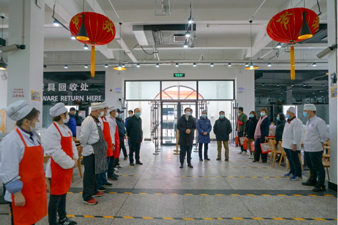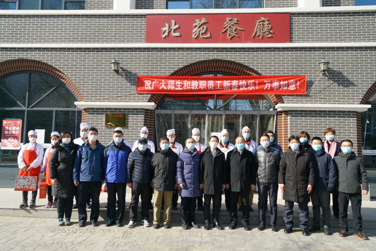 校领导先后来到后勤服务大厅、维修部、南院锅炉房、校园安全指挥中心、东配电室、留学生公寓、保安队、校医院、学生公寓、北苑餐厅等处,看望慰问后勤职工、校园安保人员、医务工作者和留校过节学生,向他们致以节日问候和新春祝福,并送上慰问品。