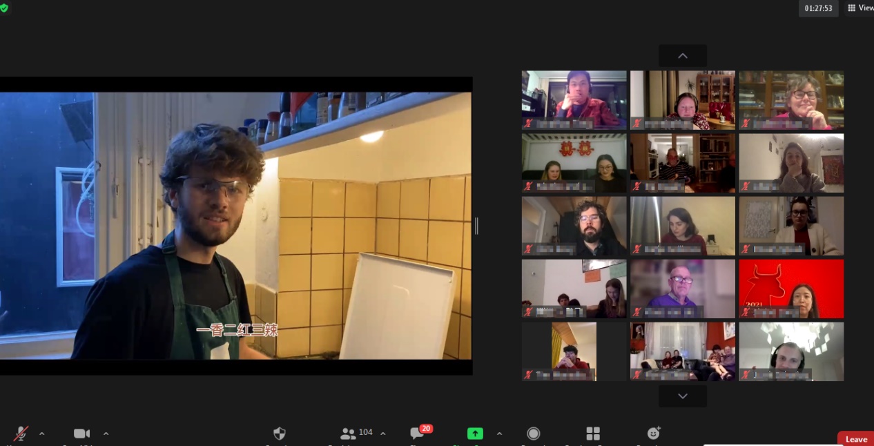 受疫情影响,今年的庆祝活动由线下转至线上进行。两个小时的庆祝活动,虽然少了以往的现场歌舞表演助兴,没有红红火火的舞台,却丝毫没有影响参与者的热情。很多参与者都穿上了喜庆的红色节日盛装,并用灯笼、剪纸装饰了自己的屏幕背景。在活动过程中,大家更是通过聊天窗口与活动嘉宾及主持人进行实时互动,气氛欢快热烈。我校格罗宁根孔子学院还精心为参加者准备了新年“福”袋大礼包和幸运抽奖。