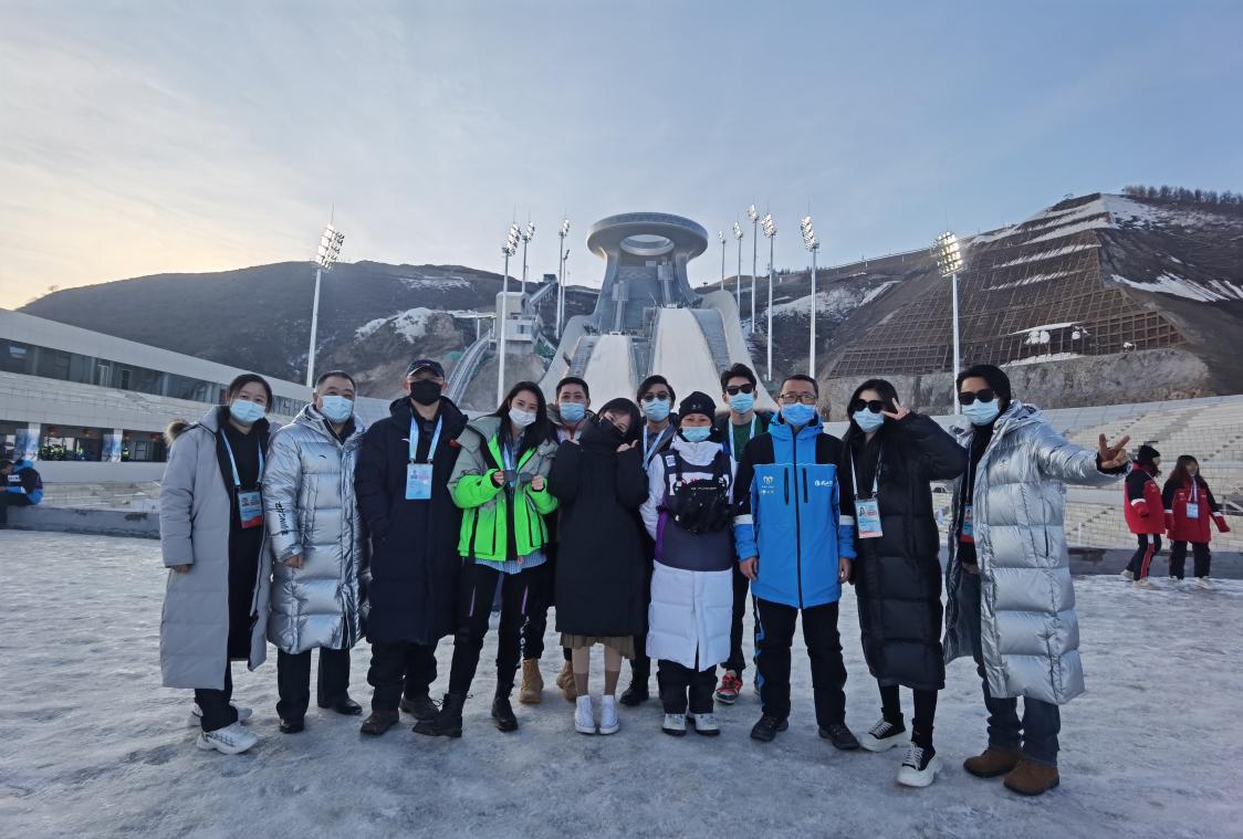 国家跳台滑雪中心承担着北欧两项(跳台滑雪)比赛。我校学子程琳、姜言、仲言、高昱诚、刘卓在体院展示经理杨晓轩等老师的带领下,以国家跳台滑雪中心绚丽灯光为依托开展双语播报解说及现场音乐秀活动,极具创新性的展示项目为美丽耀眼的“雪如意”竞技现场锦上添花。