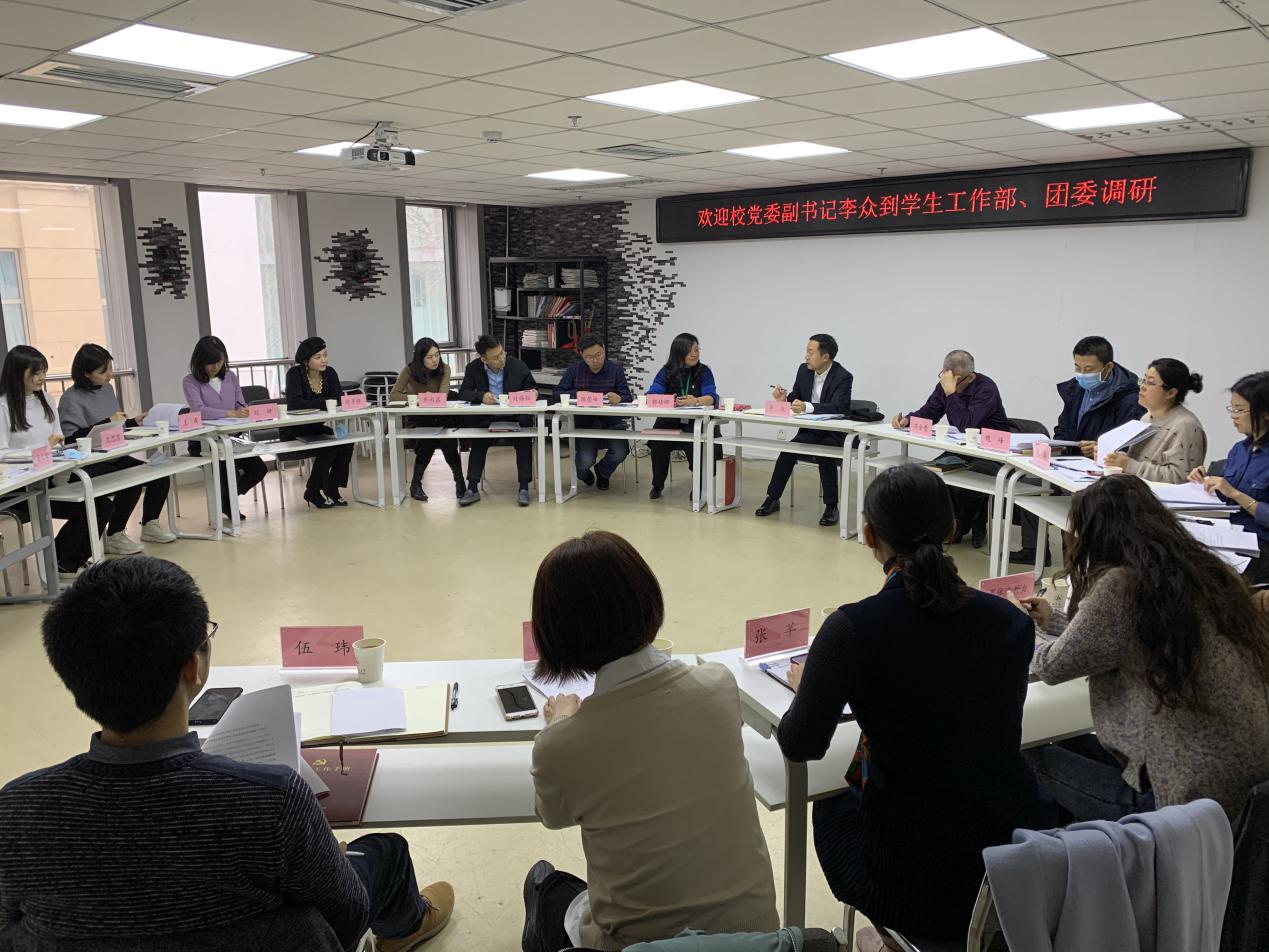 (通讯员 刘兆杰 摄影 刘兆杰 周子颜)为深入学习贯彻2021年春季工作会会议精神,对标对表春季工作会确定的“五大重要任务”“六个确保”“十五项重点工作”,高起点高质量做好我校学生工作,3月11日下午,校党委副书记李众到学生工作部、团委进行调研,了解部门队伍建设情况,听取2021年学生工作部、团委重点工作计划汇报,并参加理论学习会。