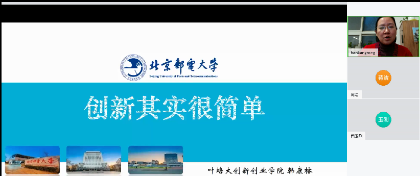 (通讯员 蒋洁 张新梅)为贯彻落实学校本科教育大会精神,全面推进本科创新创业教育和2021年度“大学生创新创业计划”项目申报工作,提高我校大创的申报质量,3月15日晚,教务处、经济与管理学院、创新创业教育中心联合举办大学生创新创业系列指导讲座第一期“创新其实很简单”主题讲座。讲座特邀北京邮电大学叶培大创新创业学院基地主任韩康榕主讲,经济与管理学院创新创业教育中心负责人闫玉刚老师主持。讲座采用线上直播方式,吸引近2000人次观看。