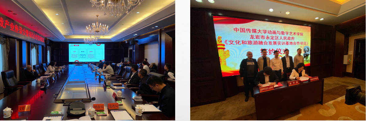 在永定区委举办的座谈会上,郑丹琪副书记详细介绍了动画与数字艺术学院的概况和办学特色,游戏系主任张兆弓介绍了庆祝建党百年系列活动之“红色交通线”实景体验情况。区委常委、宣传部长林长秀,区委常委、副区长吕吉洋等相关领导就红色文化发展、红色景区合作运营模式等主题同我方进行了交流。永定区委书记陈荣水表示,希望双方加强对接,做精做细创作内容,把红色交通线沉浸式体验游戏打造成红色游戏典范,以实际行动向建党100周年献礼。会后,双方共同签订《文化和旅游融合发展实训基地合作备忘录》。