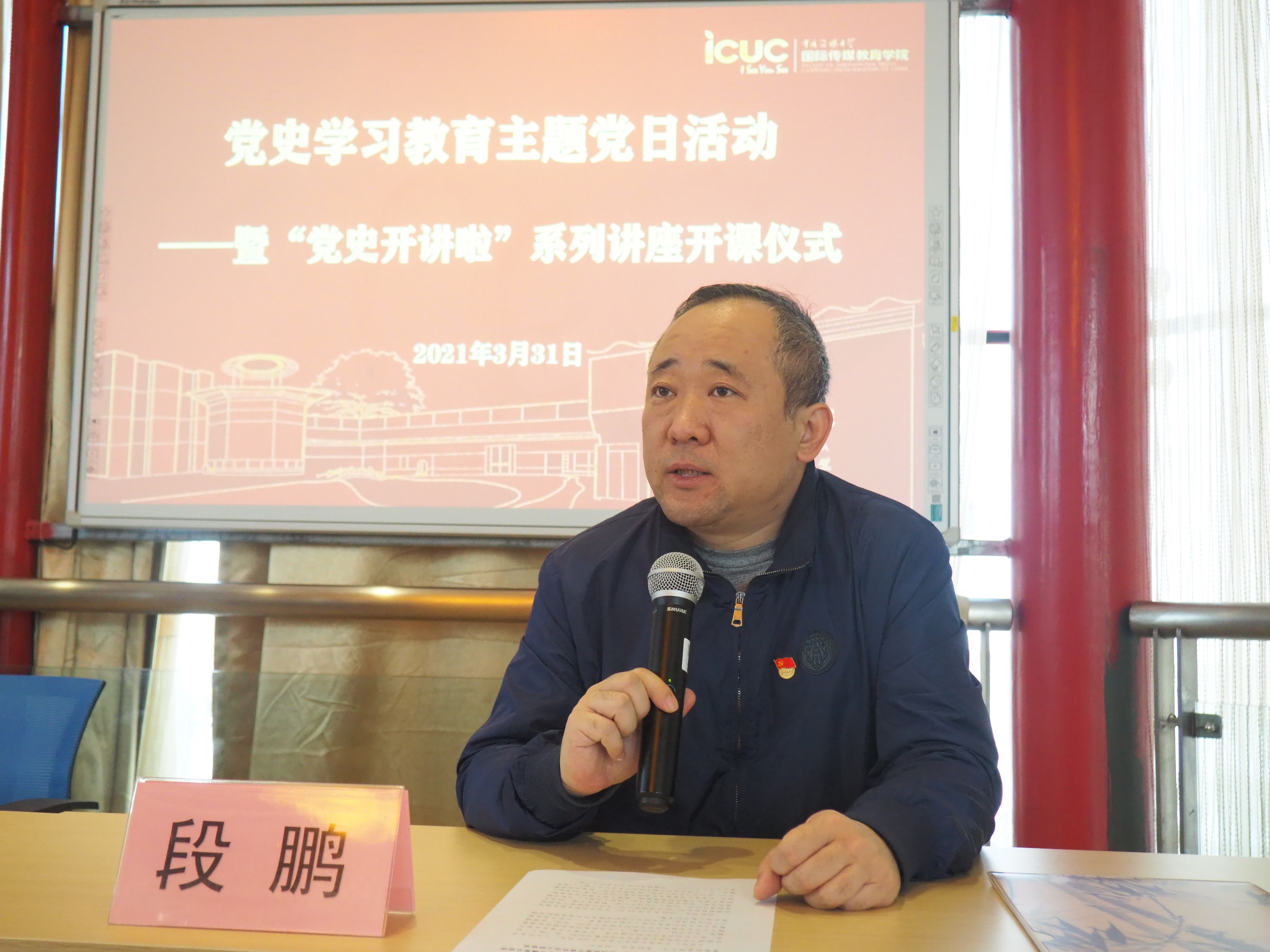 段鹏副校长在致辞中指出,中共中央进驻香山后指挥了举世闻名的渡江战役,吹响了解放全中国的进军号角;毛泽东同志发表了《论人民民主专政》,为新中国奠定治理体系与政策基础。段鹏副校长强调,北京香山被誉为中国共产党人进京“赶考”的首站,回顾这段历史,有助于我们思考“中国共产党为什么能”“中国特色社会主义为什么好”等核心命题。国传和海南两院组织的首场党史学习教育讲座,以中共中央在香山为主题,高度契合党史学习教育的目标要求,可谓“正当其时”。段鹏副校长希望两个学院能够深刻理解廖祥忠书记在我校“党史学习教育动员大会”上提出的目标要求,认真思考如何“充分依托学科特色、资源、平台,精心设计‘自选动作’,打造学校精品、一院一品、支部多品”,希望两院师生能在学习党史的过程中以信仰之光照亮前行之路,为开创国际办学新局面,实现我校“中国特色世界一流传媒大学”奋斗目标贡献智慧和价值。