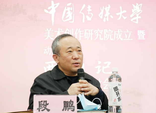 段鹏副校长在致辞中表示,山西省运城市历史文化丰厚,地上文物数量位居全国第一。此次《西厢记》动画电影的创作得到山西省委、运城市委的大力支持。学校党委高度重视艺术创作工作,在廖祥忠书记、校长的指导下,科学研究处近年来通过艺术创作评价体系改革、科研机构改革、科研人事制度改革等一系列重大举措,极大地解放了生产力,激发了学校科研工作者的热情,科研和艺术创作成绩喜人。中国传媒大学是全国最早一批建设动画专业的高校,现任书记、校长廖祥忠是中国动画高等教育重要的奠基人和推动者之一,我校动画专业在全国也始终处于引领地位,并有大量师生主创的动画作品在社会上产生广泛影响力。中国传媒大学美术创作研究院在此背景下成立,黄心渊教授和王冀中教授具有多年教育和业界经验,相信动画电影《西厢记》的创作一定会获得成功。