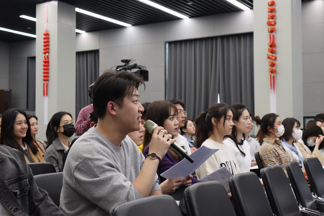 虹云老师特别谈到,“播音就要一丝不苟”,她指出,坐在话筒前要严谨专注,播读之前一定要明确具体内容。陆洋老师就自己五十多年的播音经历、经验给同学们提出了许多中肯建议,他强调,语言要有表现力和感染力,不能“平着走”,要有“波澜起伏”。