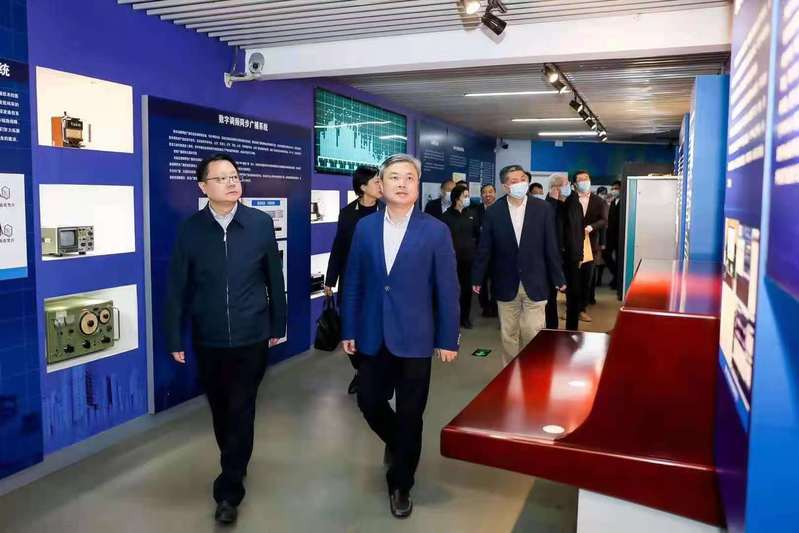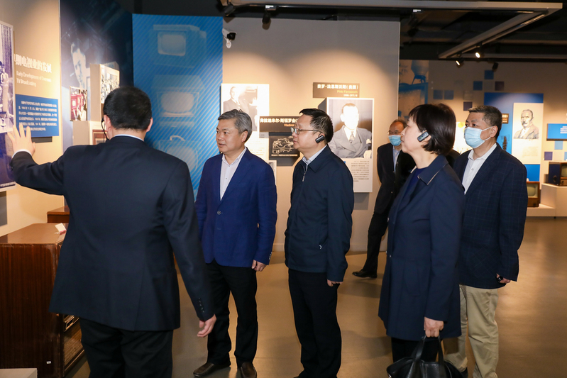 在传媒博物馆、校史馆,廖祥忠书记、校长及相关负责人向朱咏雷副局长一行介绍了中传办学的主要成就、未来发展理念和规划。朱咏雷副局长在参观时指出,中传拥有得天独厚的传媒历史资源和优势,希望学校党委充分利用自身特色资源优势,创新党史学习教育方式,高质量推动中国特色、世界一流传媒大学建设。