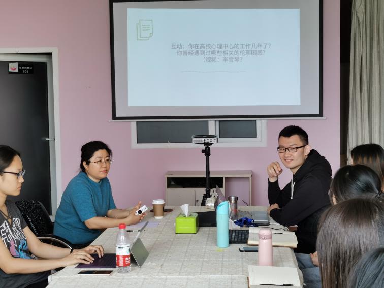 (通讯员 李湾 李文鑫 摄影 李文鑫)4月25日上午9点,我校学生工作部心理健康教育中心在44号楼五层会议室组织了主题为“高校心理中心涉及的相关伦理和法律议题”的专题培训,参会人员为心理中心的专兼职咨询师,培训会由我校心理健康教育中心负责人张静老师主讲。