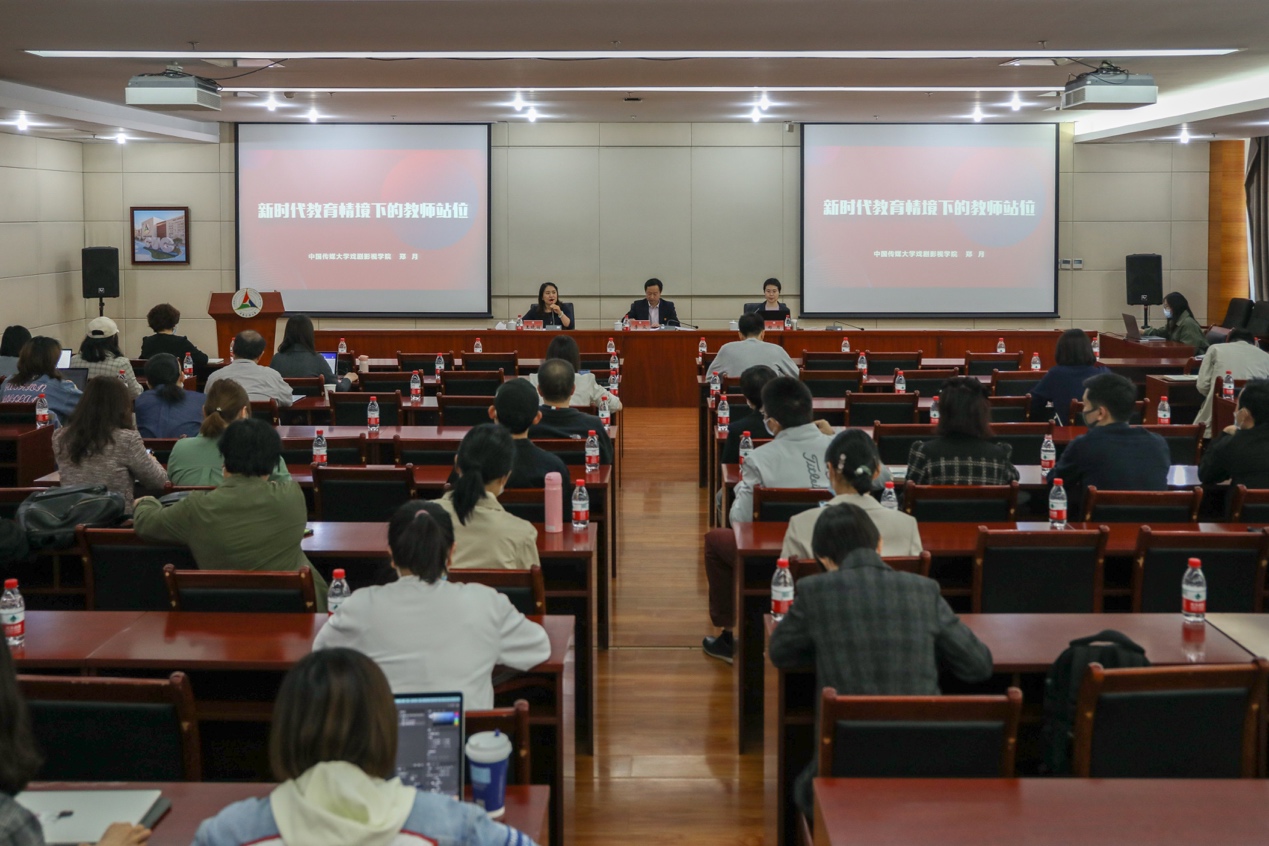 郑月教授以“新时代教育情境下的教师站位”为题,结合自身感悟作了分享交流。她以“深耕课堂、启智润心、立德树人”为起点,从自身教学经验出发,分享了立足传媒专业课程实现立德树人应如何聚焦主体性、强调实践性、突出开放性、提升时代性。郑月教授还分享了搭建多维度复合式“全员育人”教学团队的经验;讲述了如何结合实践在专业课程中开展课程思政,如何以“传播”提升课程思政效能;提出了如何构建具有开放性的实践教学体系;分享了专业教学应如何深入关联新时代中国特色社会主义经济、政治、文化、社会、生态文明建设需求的做法与举措。