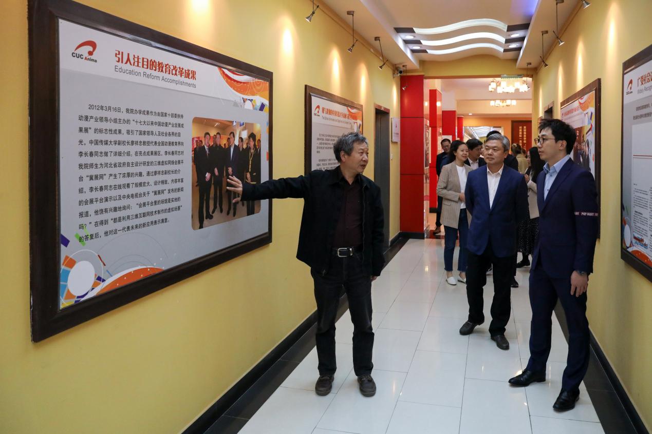 王宁董事长一行来到动画与数字艺术学院,参观了亚洲动漫研究中心、中国动漫艺术陈列馆、智能媒体与未来影像实验室、定格动画与动漫衍生品设计工作室、设计思维训练坊和电竞实验室并观看了师生创作的作品。随后,双方进行了座谈交流。