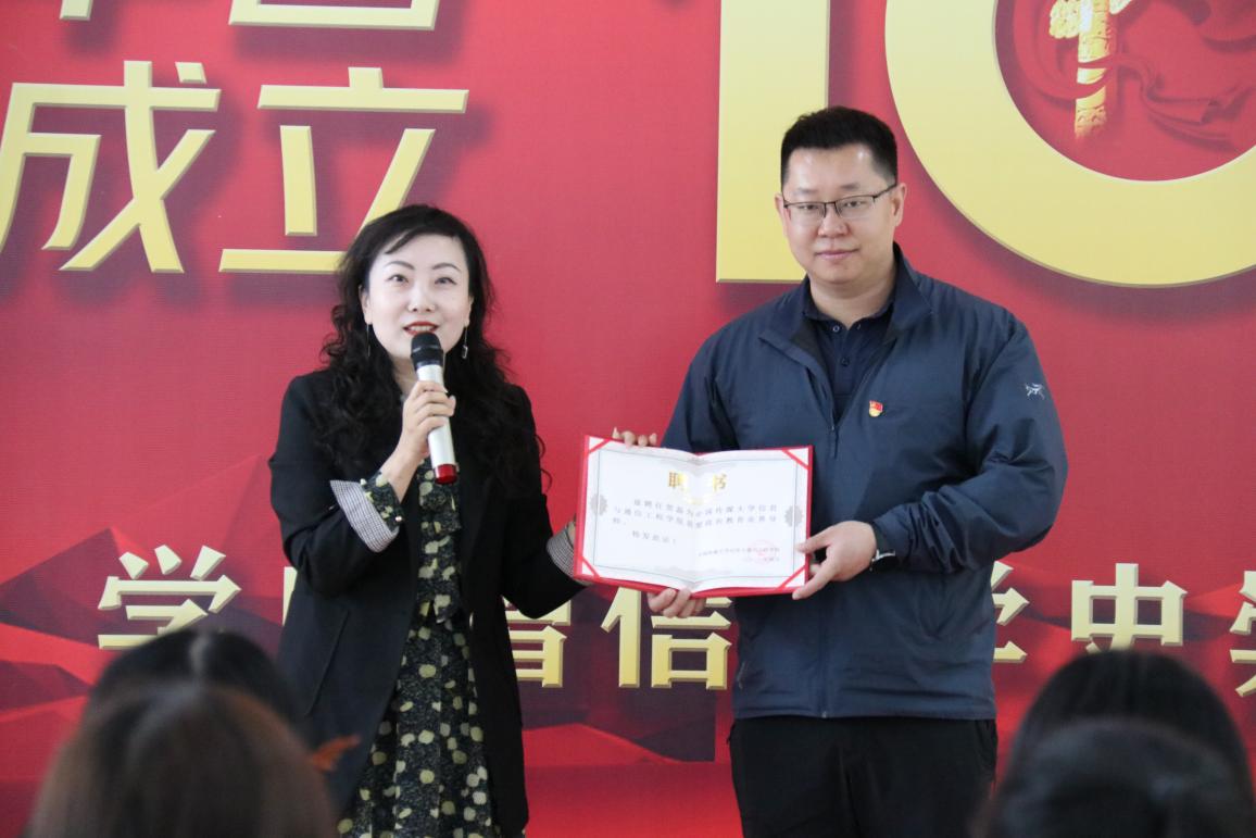 信息与通信工程学院党委副书记钟丹丹代表学院向贾磊副台长颁发了思政教育业界导师聘书。她谈到,四九一台是红色电波传输发送的源头,承担了向全国、向海外转播开国大典盛况的重任,这对于学习广播电视发送技术的同学来说是宝贵的红色学习资源。同学们不仅学到了专业知识,更加重温了党领导下无线广播事业的发展历程。她希望在座的同学们努力学习,为我国无线广播技术事业贡献力量。