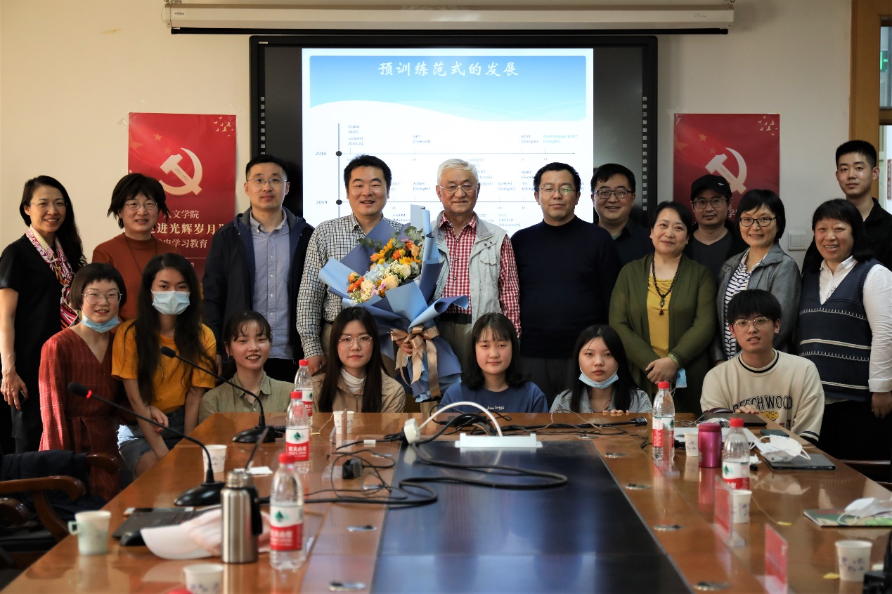 (通讯员 乐琦 何伟)4月28日,著名计算语言学家冯志伟先生应邀到访人文学院,为学院师生带来一场题为“词向量与语言学”的学术讲座。讲座通过线下线上方式同时进行。线下讲座由我院何伟副研究员主持,脑科学与智能媒体研究院院长曹立宏教授、有声媒体语言中心主任邹煜教授以及人文学院部分师生参加。400余人在线观看了讲座直播。