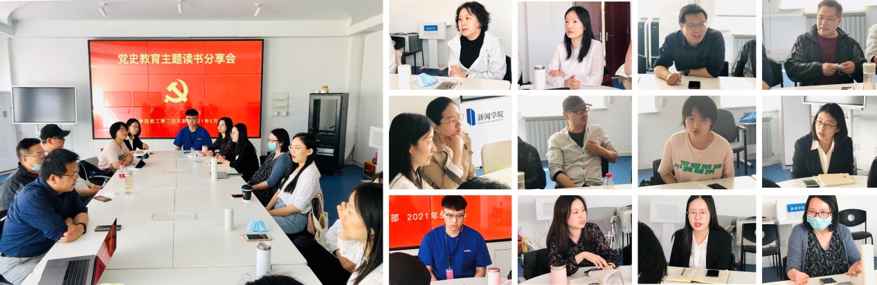 5月8日,新闻学院教工党支部组织开展党史教育主题读书小组分享会。在交流发言中,两组党员教师结合读书周的党史学习和参观活动,就学习党史的方法和成果,交流了学习心得。部分党员教师结合新闻传播学的教学、科研以及作品创作等实际工作,就马克思主义新闻观、媒体融合与社会治理、党史学习与实践教学相结合等问题做了主题汇报。还有党员教师将自身成长与党和国家发展的历史相结合,就学生党史教育和学院未来发展提出建议。