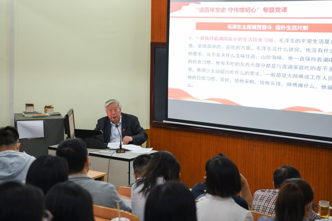 (通讯员 张梦龙 李楠楠)作为我校春季读书周“读百年党史 守传媒初心”特色主题活动,5月9日下午,政府与公共事务学院联合学科建设与发展规划处邀请毛泽东主席晚年图书管理员、中共中央办公厅老干部局原局长徐中远来到学校,就“学习毛泽东一生艰苦奋斗俭朴生活永葆劳动人民生活本色”和“学习毛主席‘为什么读书’”两大主题作专题讲座。