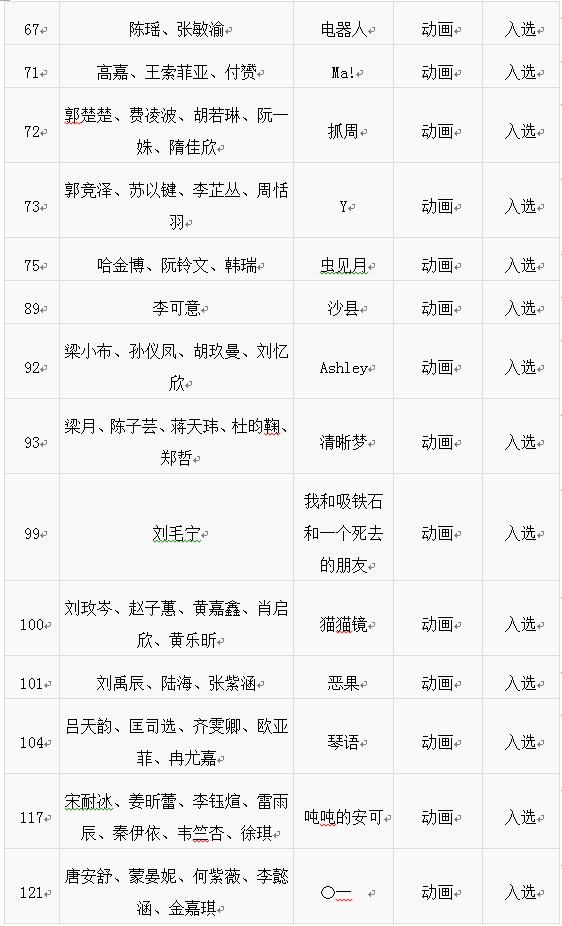 附:我校入选作品名单: