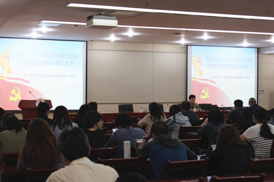 (通讯员 郇瓛 王飞可)5月13日上午,我校党委巡察工作办公室邀请北京外国语大学纪委副书记、纪委办公室主任李正玉做专题讲座,题目是《党的巡视工作历史回顾与高校开展校内巡察的实践与思考》。讲座由学校纪委副书记、监察处长、党委巡察工作办公室主任张根兴主持,学校巡察领导小组部分同志、巡察人才库成员参加学习活动。