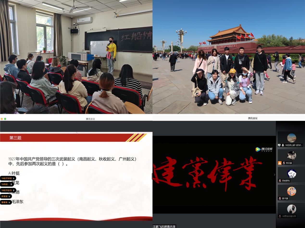 各团支部也积极响应号召,组织开展了有关党史学习教育的研学探讨、实践活动,团日活动反响热烈。各年级团支部召开团员大会进行学习,如2018级数字经济、传媒经济团支部与2018级传媒经济学博士团支部在会上学习习近平总书记关于学习党史的系列讲话精神、观看党史教育视频资料与主旋律电影等,并交流心得感悟;2019级市场营销团支部对支部团员进行了分组,各组自主展示红色故事、家乡红色资源,让红色文化交流融合;2019级传媒经济团支部组织同学们进行党史知识竞答,同学们踊跃参与,角逐激烈;2019级管理科学与工程研究生团支部开展了“我为家乡红色资源代言”的话题讨论。在实践方面,2020级工商管理1班开展了《展望未来,青春有我》的角色话题秀,以一场充满思辨性的角色互动秀加深同学们对党领导下祖国的变迁的理解,充分认识到青年的责任与担当;2020级传媒经济学研究生团支部组织支部全体成员于北京天安门广场实地回顾历史,参观历史建筑群增强了同学们的荣誉感和自豪感。各式各样的研学活动和实践活动将党史学习融入了同学们的学习和生活,在学院内形成了浓厚的党史学习氛围。