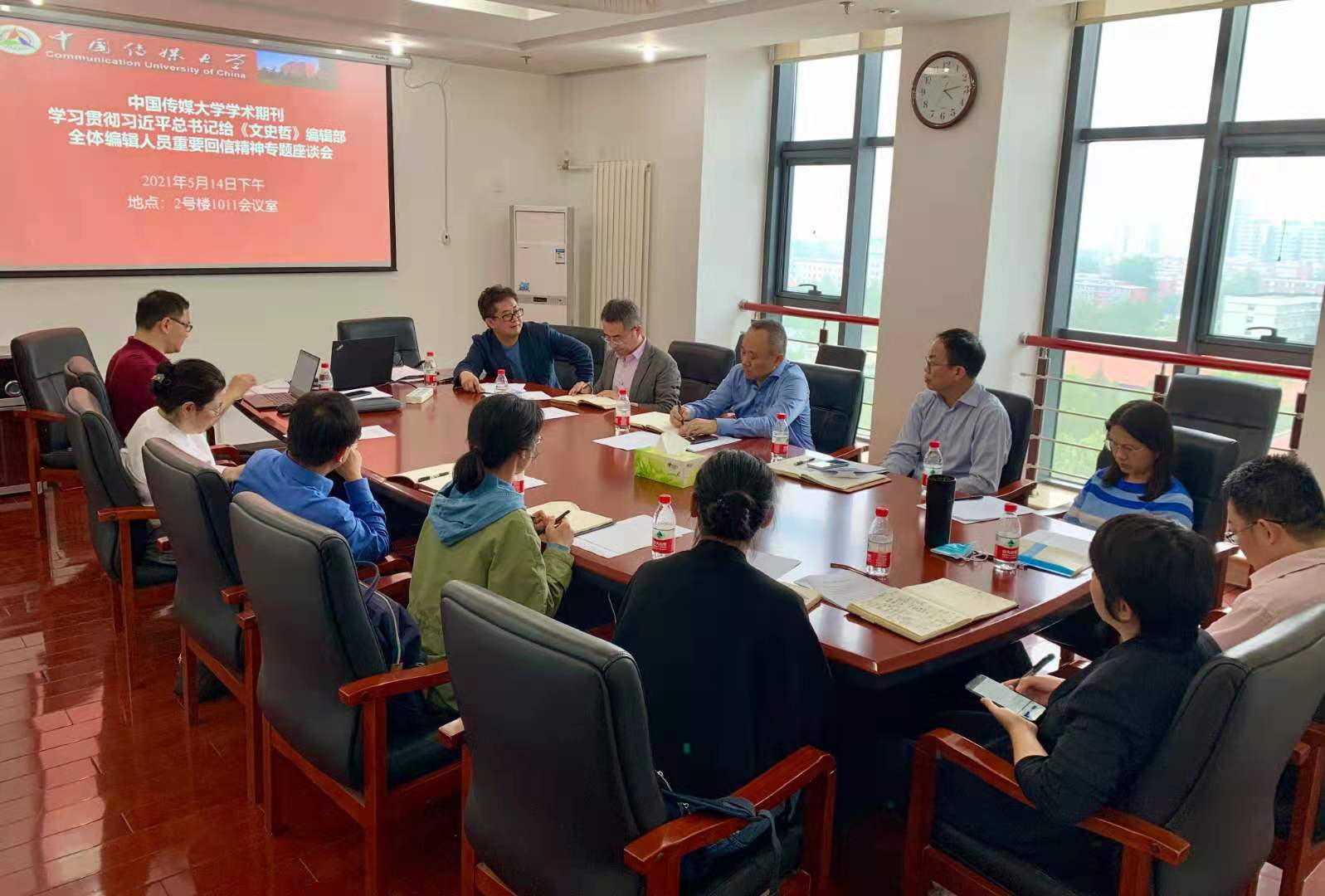5月14日下午,中国传媒大学学术平台发展中心在明德楼1011会议室举办学习贯彻习近平总书记给《文史哲》编辑部全体编辑人员的重要回信精神专题座谈会,副校长段鹏教授出席会议,我校主办的学术期刊《现代传播》《现代出版》《中国新闻传播研究》《艺术传播研究》《媒介》《全球媒体与中国》(Global Media and China)等中英文刊物编辑部负责人、编辑代表以及部分校外合作期刊的校内负责人参加学习座谈。座谈会由我校科学研究处副处长兼学术平台发展中心主任、《现代传播》副主编张国涛研究员主持。