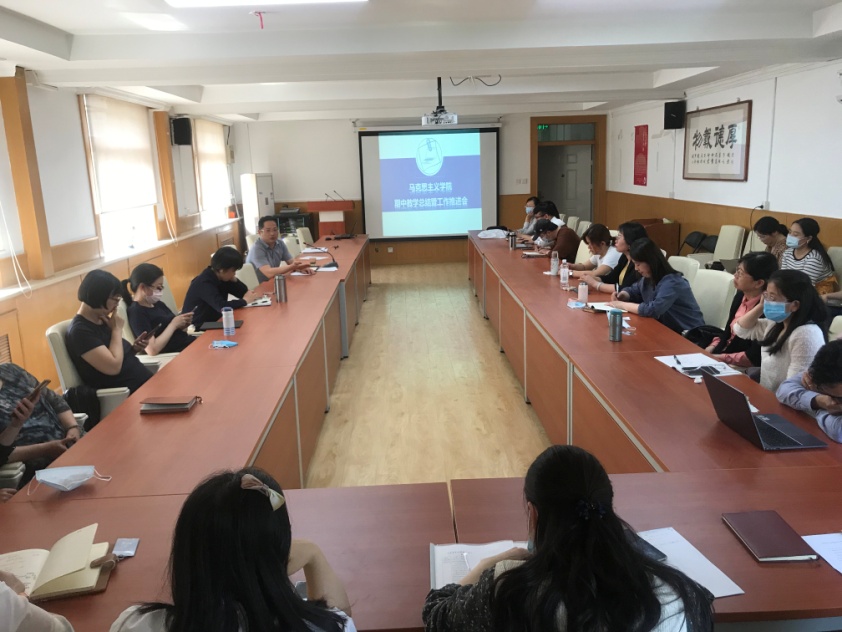 刘东建院长对上半学期的教学运行工作进行了小结,肯定了各个教研部(室)在双师课教学创新实践、探索沉浸式党史教育教学、按部就班富有成效的集体备课等方面所做出的不懈努力,向在北京市高校思政课教学基本功大赛中获奖的四位老师表示祝贺与鼓励。刘院长还着重就学院作为北京市重点建设马克思主义学院的社会服务职能职责进行了梳理,肯定了学院教师在北京市习近平新时代中国特色社会主义思想研究中心研究基地建设中贡献的丰硕研究成果,称赞了师生共同参与录制的中传思政对话课,分享了青马学院理论教学思路经验,就积极开展与兄弟马院和基层社区党组织共建、帮扶、集体备课、党史学习教育联动等工作予以支持,表扬了学院教师踊跃参与多项社会服务工作的先进典型。