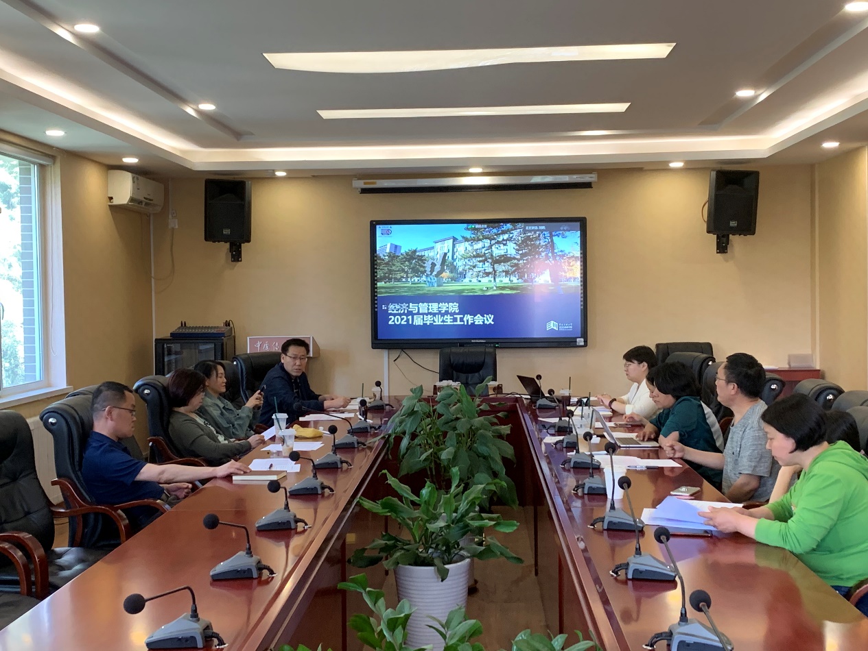 (通讯员 徐驰)为进一步做好学院2021届毕业生就业工作,安排好毕业季各项活动,5月26日,经济与管理学院组织召开2021届毕业生工作会议,系主任、研究生导师组长、毕业班班主任以及辅导员参会,会议由学院党委副书记毛建国主持。