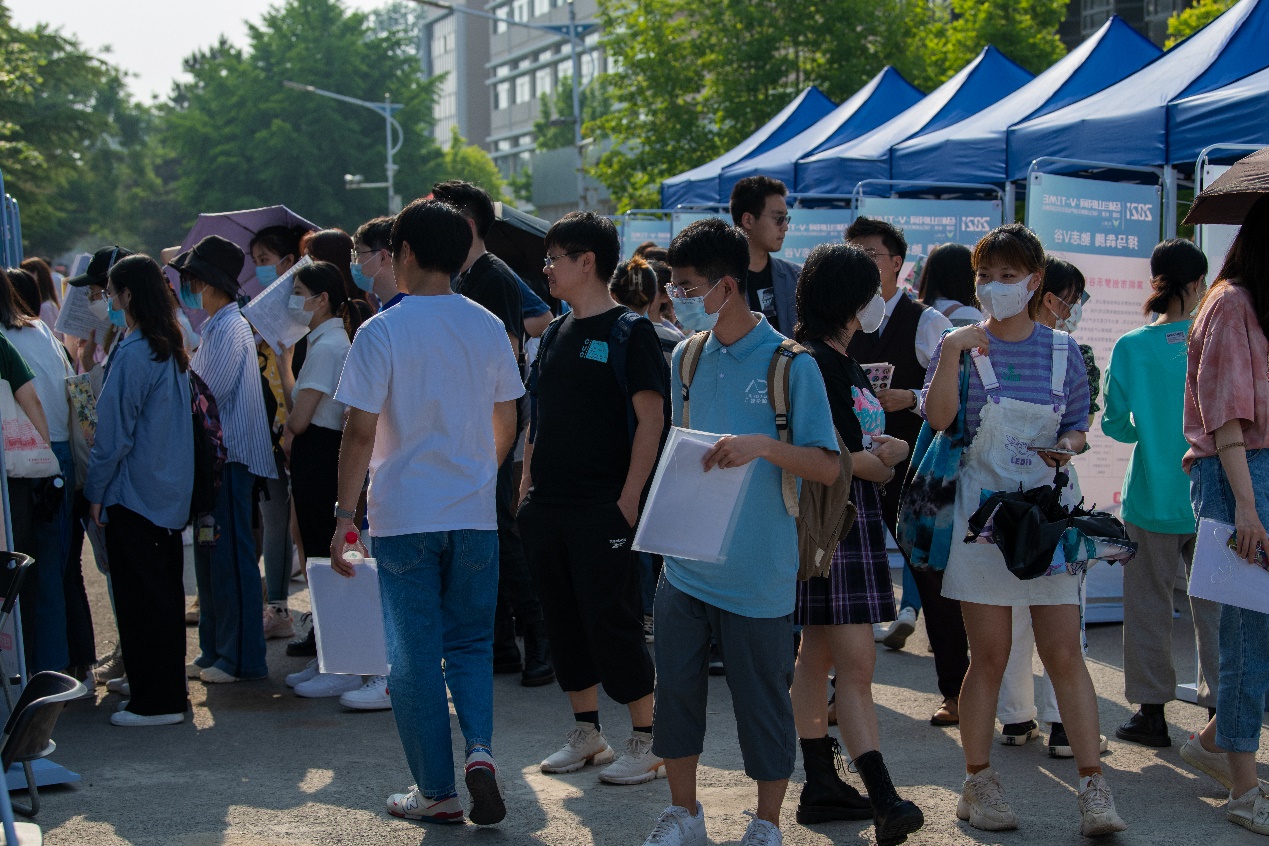 宣讲会后,参会学生前往国重大楼门前的招聘洽谈区,与20家优质企业深度交流,现场面试。