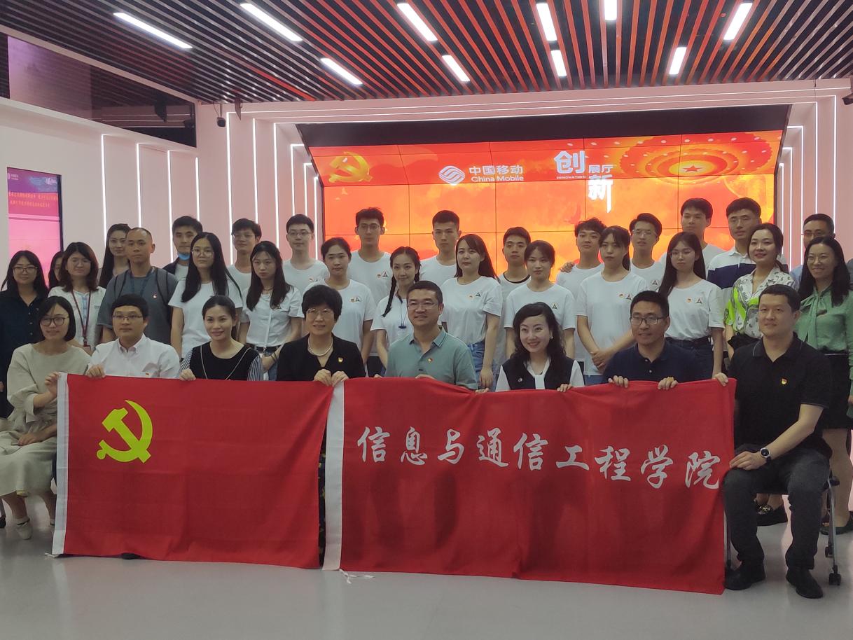 (通讯员 王昂 李文宇 摄影 李雨轩 张文龙 覃恒宇)6月2日,信息与通信工程学院副院长金立标、党委副书记钟丹丹等师生21人前往中国移动政企分公司开展主题党日活动,参观学习中国共产党领导下的信息通信业发展历程。信息与通信工程学院专业硕士党支部与中国移动政企事业部联合党支部进行了共同学习,并一同演唱了经典红歌《四渡赤水出奇兵》。中国移动政企事业部副总经理魏冰、中国移动政企教育行业拓展部党支部书记李颖、教育行业拓展部副总经理于璐、中国移动研究院人工智能与智慧运营中心副所长金镝、北京移动公司重客中心教育行业总监张伟等出席活动。