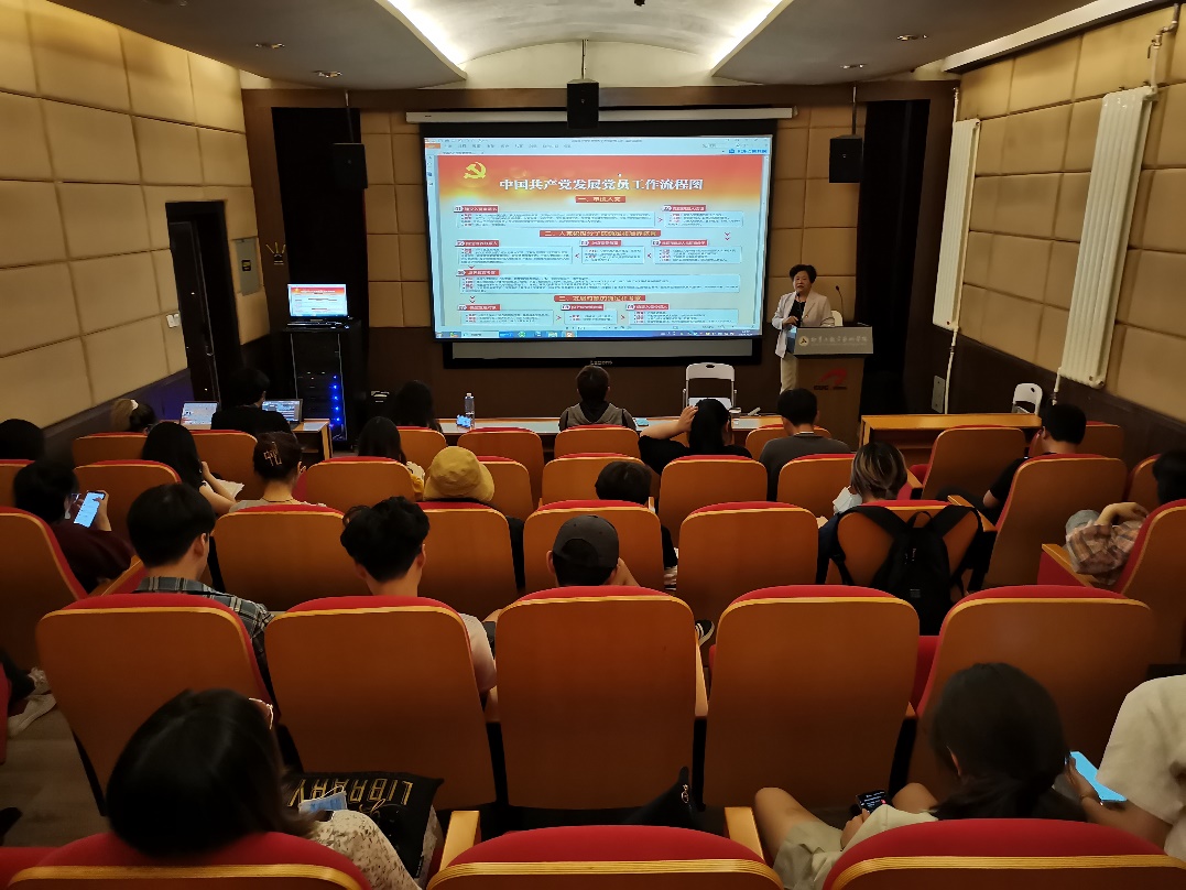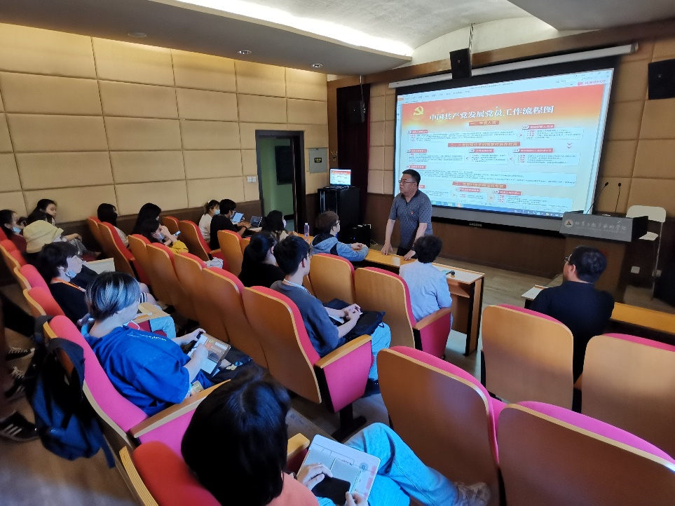 会上,闫琳老师结合《中国共产党发展党员工作流程图》讲述了学校学生党员发展工作的总体流程、具体工作的实施规范,并以发展时间阶段为总路线,系统梳理并讲解了自递交入党申请书到成为正式党员全流程中一些关键节点的发展工作要求。同时,闫老师对党员发展的党籍档案材料筹备规范等内容,以及入党发展的基本条件、基本概念等进行了详细讲解。