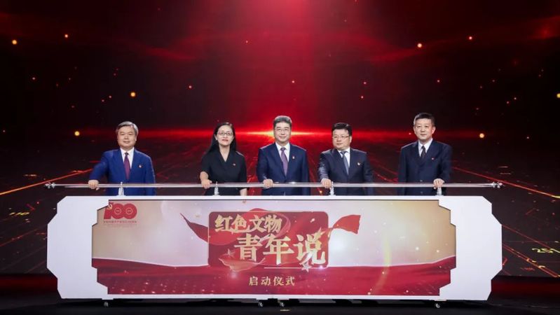 教育部高等教育司司长吴岩,中宣部宣传教育局副局长冷志明,《党建》杂志社社长有宝华,央视网党委书记、董事长钱蔚,中国传媒大学党委书记、校长廖祥忠上台按动按钮,在现场嘉宾及师生的见证下,共同启动“红色文物青年说”项目。