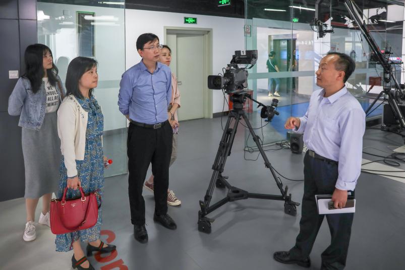 座谈会后,戚家坦副部长一行参观了国重大楼12层融媒体中心演播室。湖南大学党委宣传部教育舆情研究中心办公室主任郑斯洋、新媒体主任周丹等参加交流。