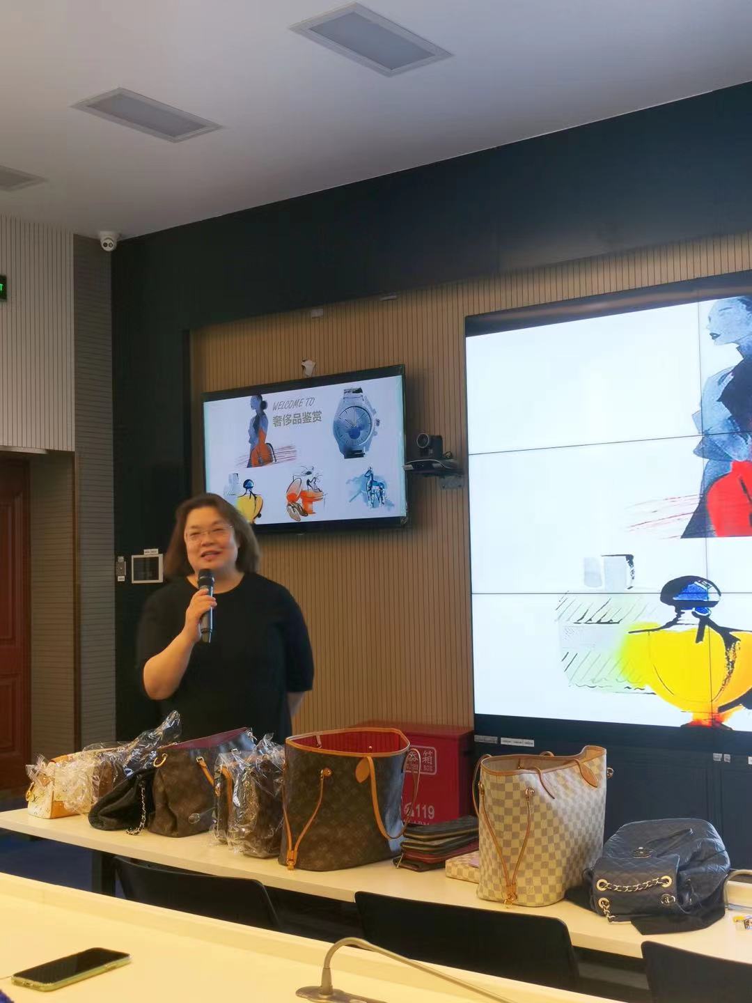 讲座中,陈静宜主要介绍了路易威登(LV)品牌箱包的真品鉴定方法,并通过企业携带的几十款奢侈品箱包进行实例介绍及真品、仿品的对比讲解。本活动还设置了问答环节,由现场听课的老师和同学鉴别产品的真伪,积极参与问答的老师同学还获得了华夏典当行准备的奢侈品衍生精美礼物一份。