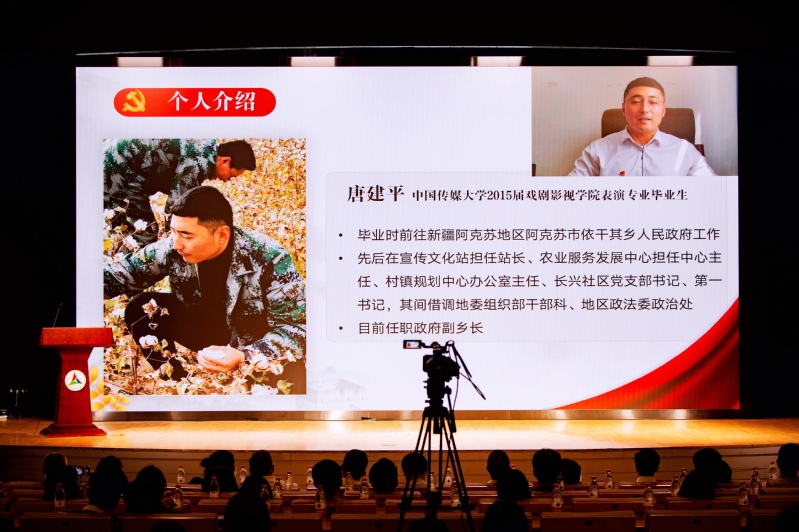 在宣讲环节,清华大学王岩、北京工业大学焦泽栋、北京物资学院周梦凡、中国传媒大学唐建平、北京邮电大学罗旭、中国传媒大学姚衣凰6位就业创业先进典型代表,分别讲述了他们响应党和国家号召,扎根基层、奋斗报国的感人故事。